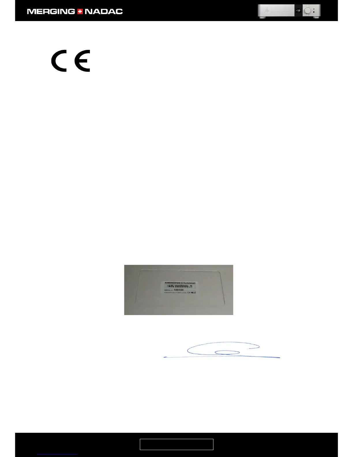 The CE label is affixed on the bottom of the MERGING+NADAC unit as per below: