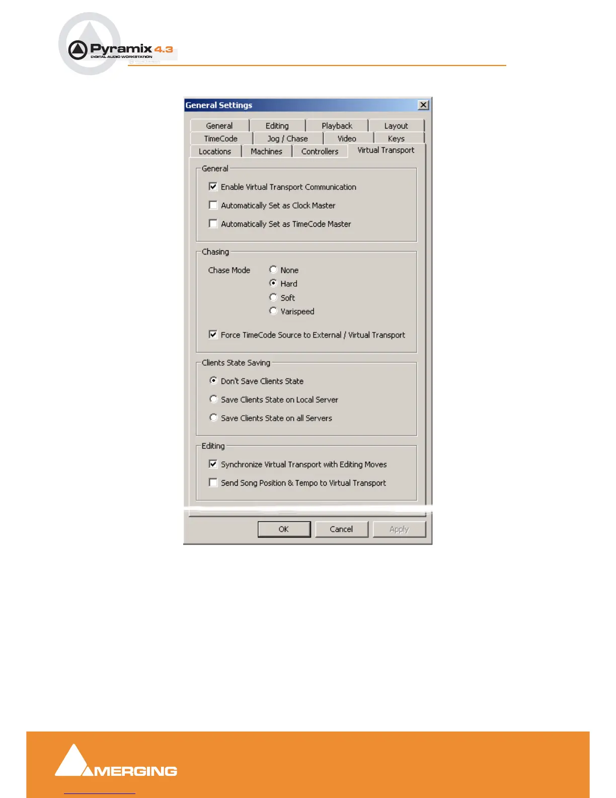 When checked, Pyramix communicates bi-directionally with Virtual Transport.