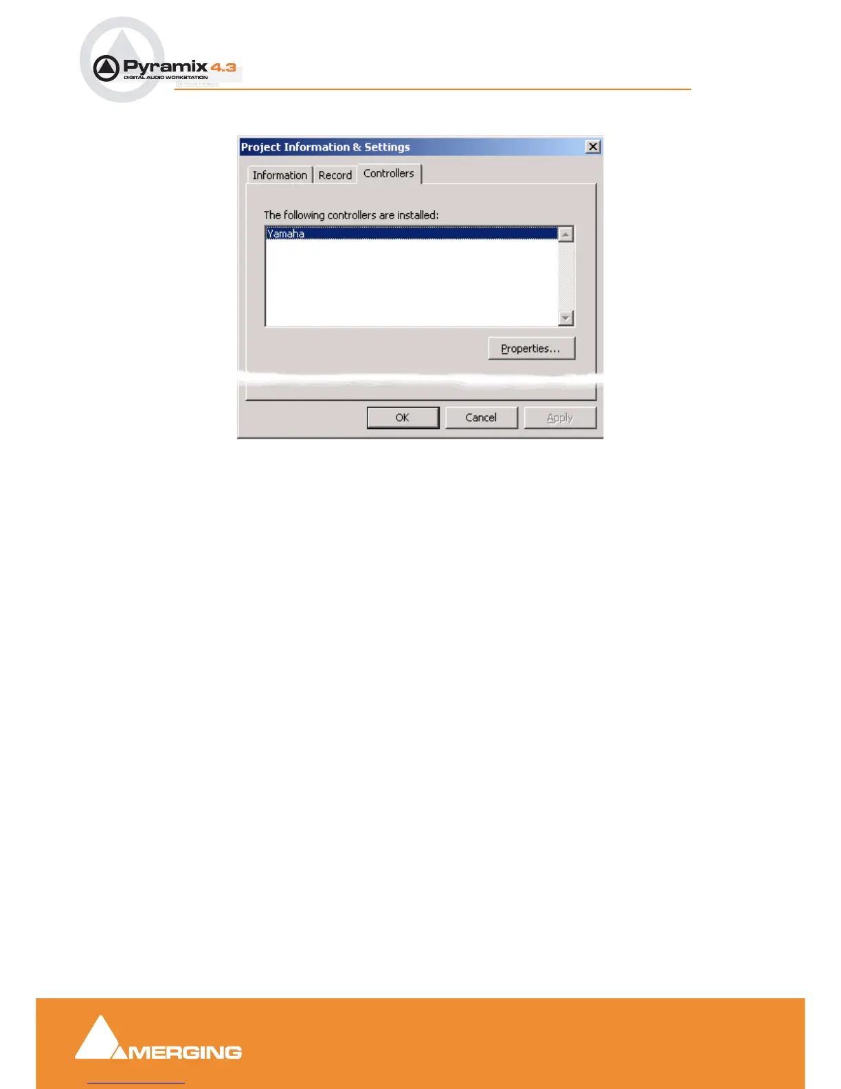 Project Information & Settings dialog box -Controllers Tab page