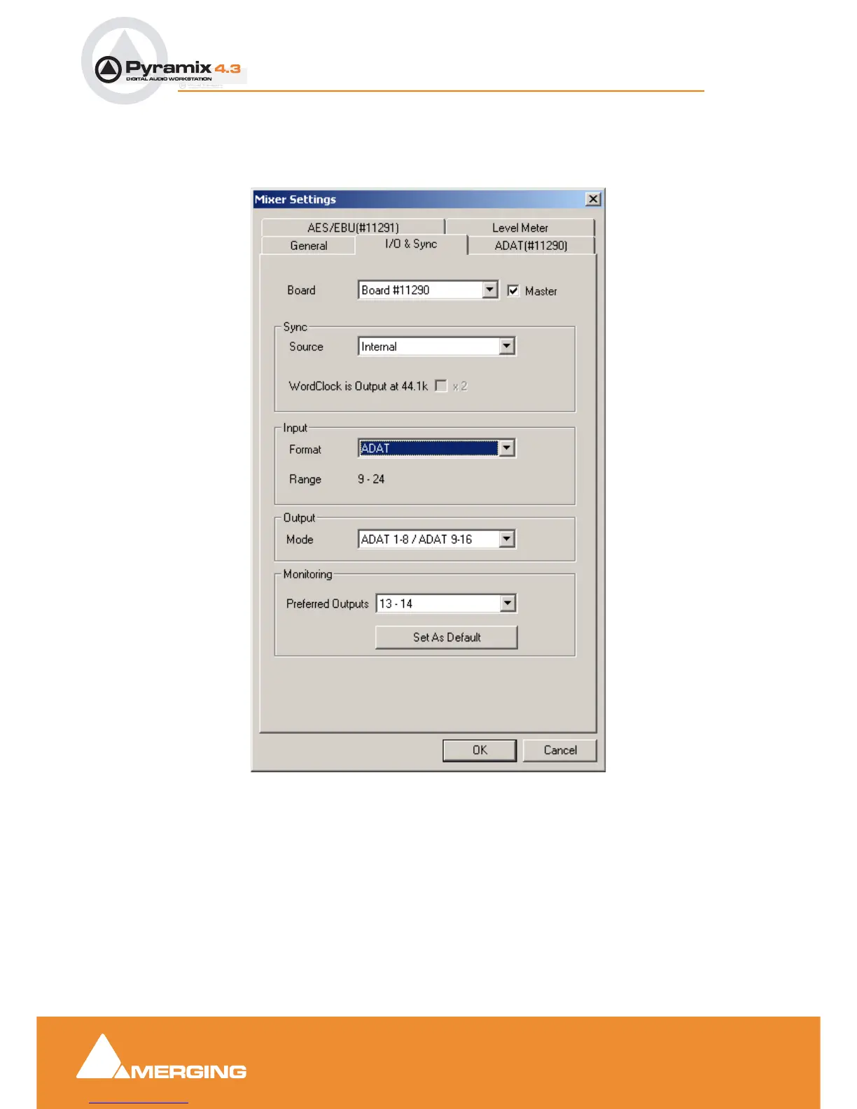 Mixer Settings dialog box - I/O & Sync Tab page