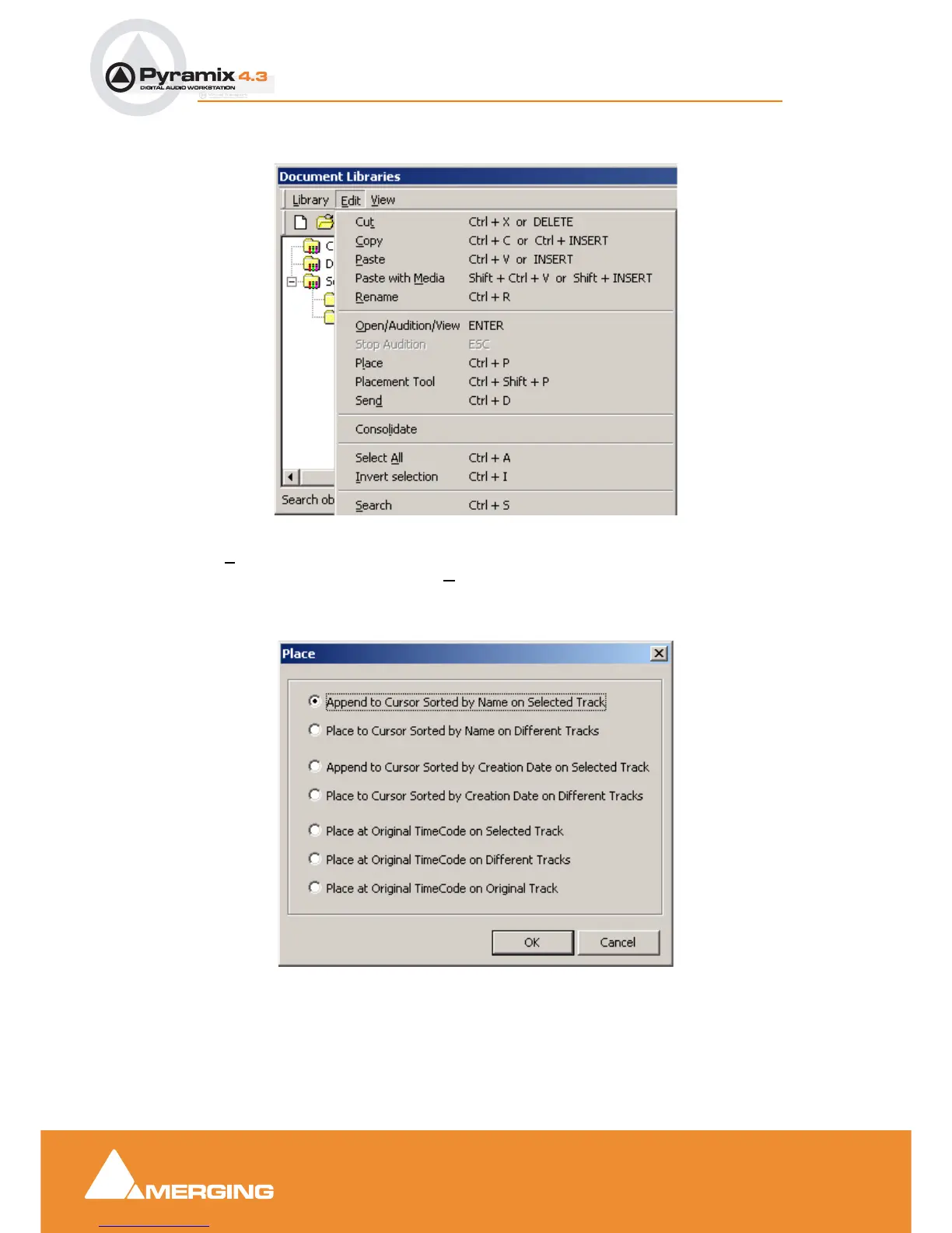 Document Libraries Edit menu Place dialog
