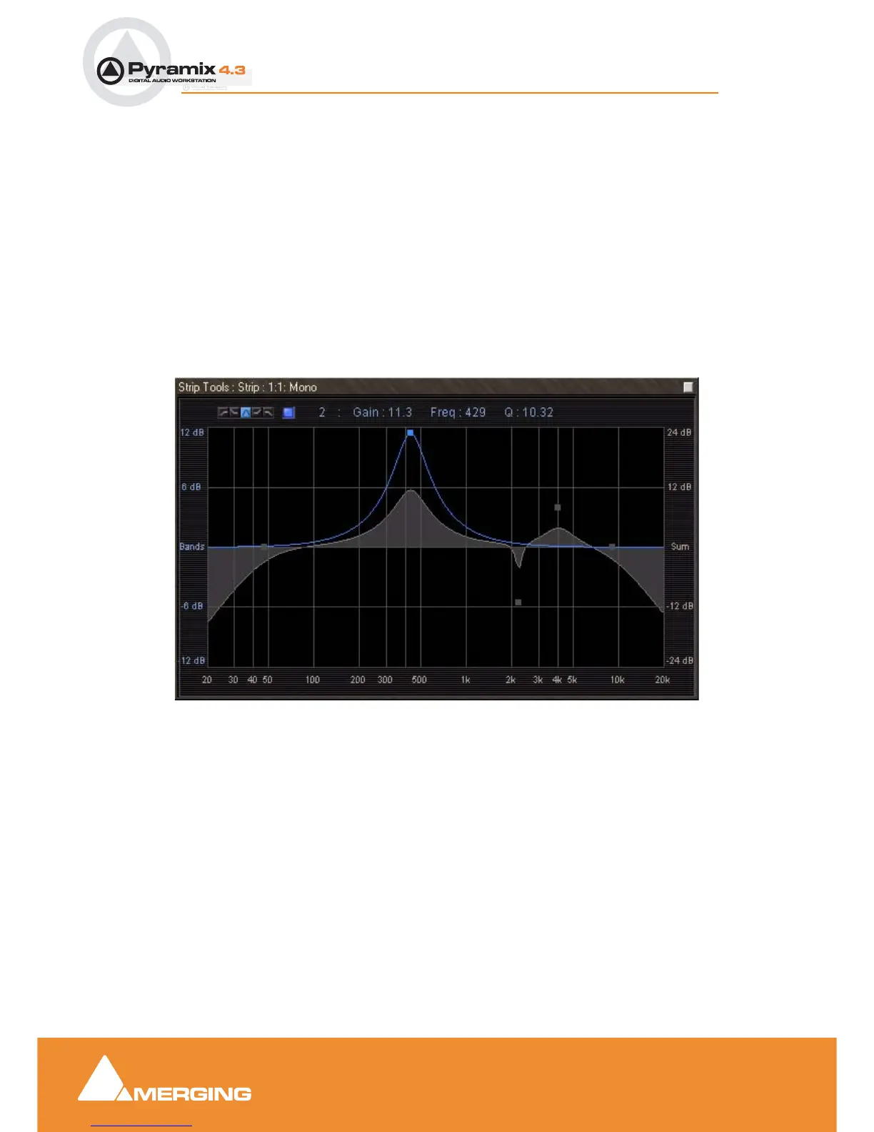 • Clicking and dragging a handle with the right mouse button alters the Q (bandwidth) of this band.