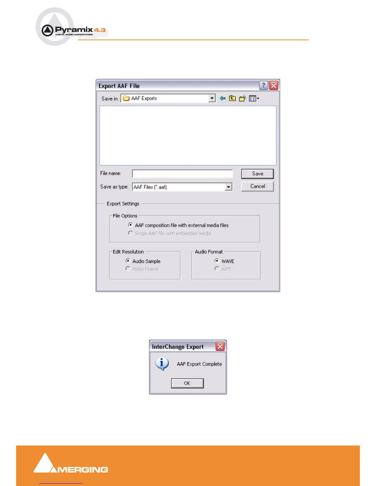 Select AAF in the Interchange Export dialog. Choose the appropriate export option and click on