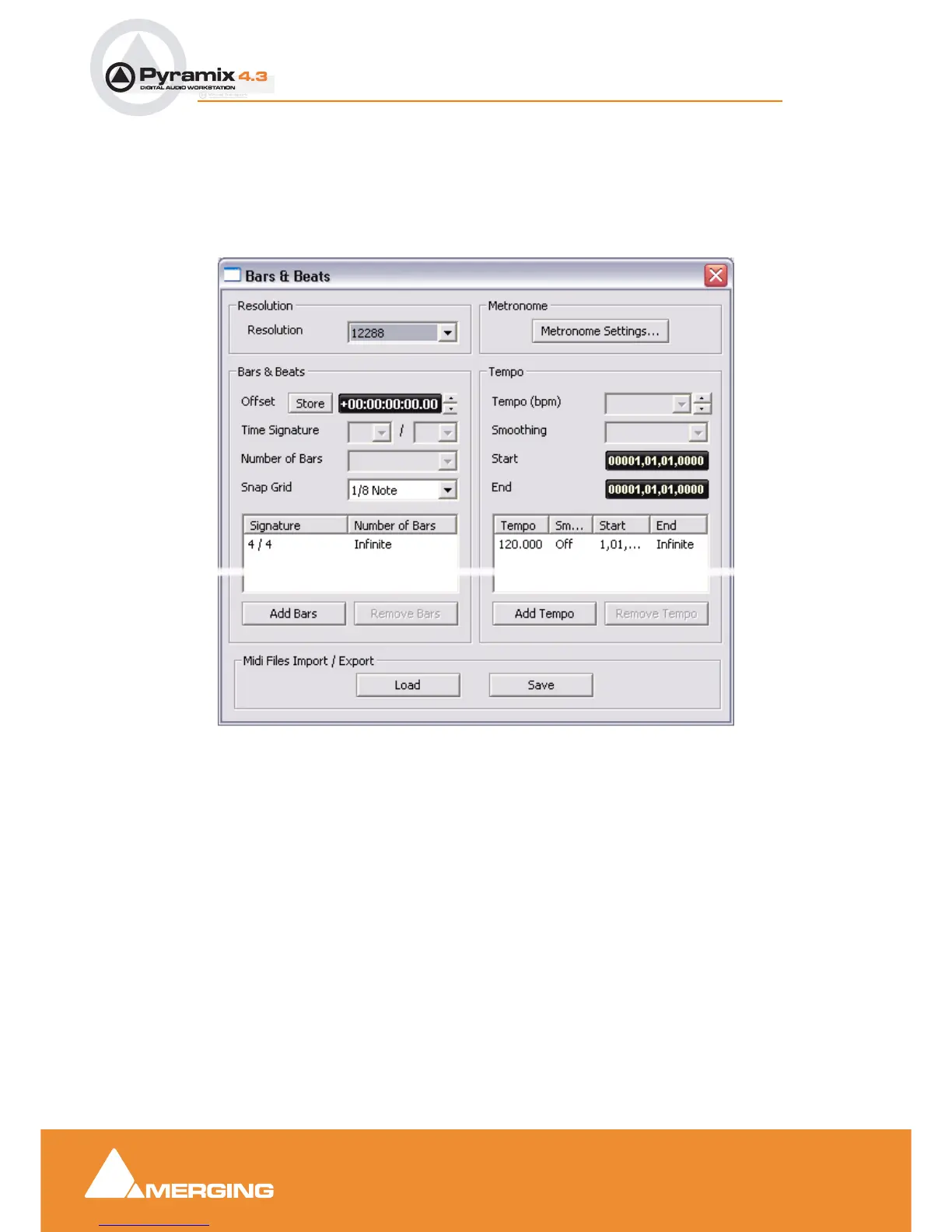 Remove Tempo Removes the highlighted (selected Tempo) from the list.