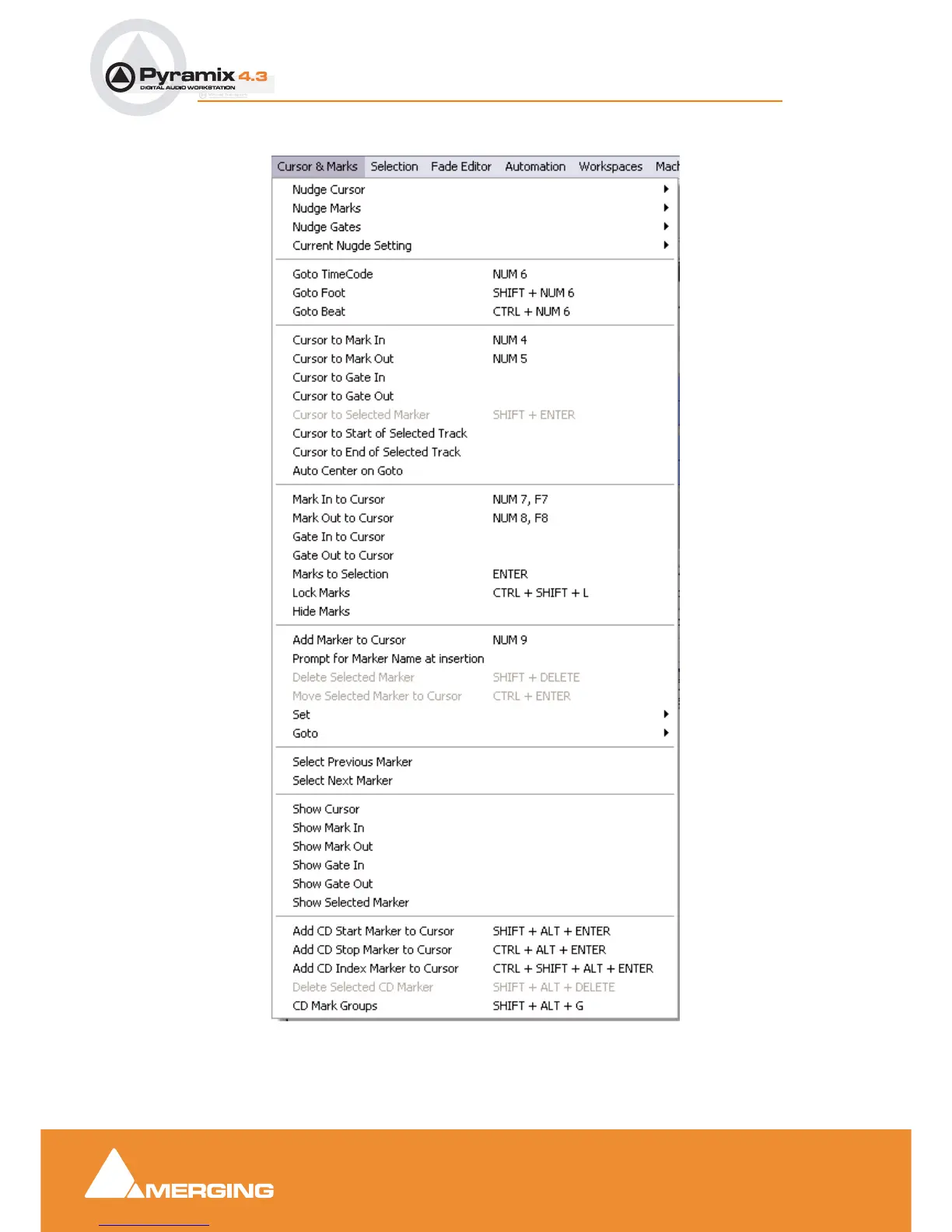 Merging Pyramix 4.3 - Menus - Cursors and Marks