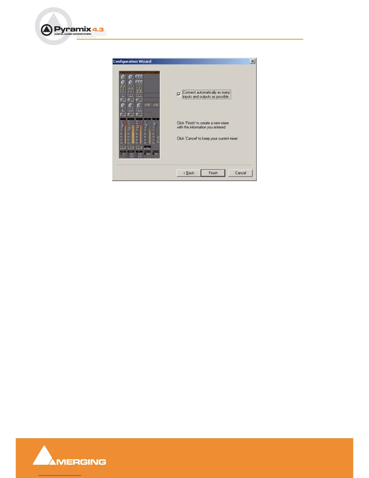 The Mixer you configured above will now appear on the screen in a separate Mixer window. It will con-
