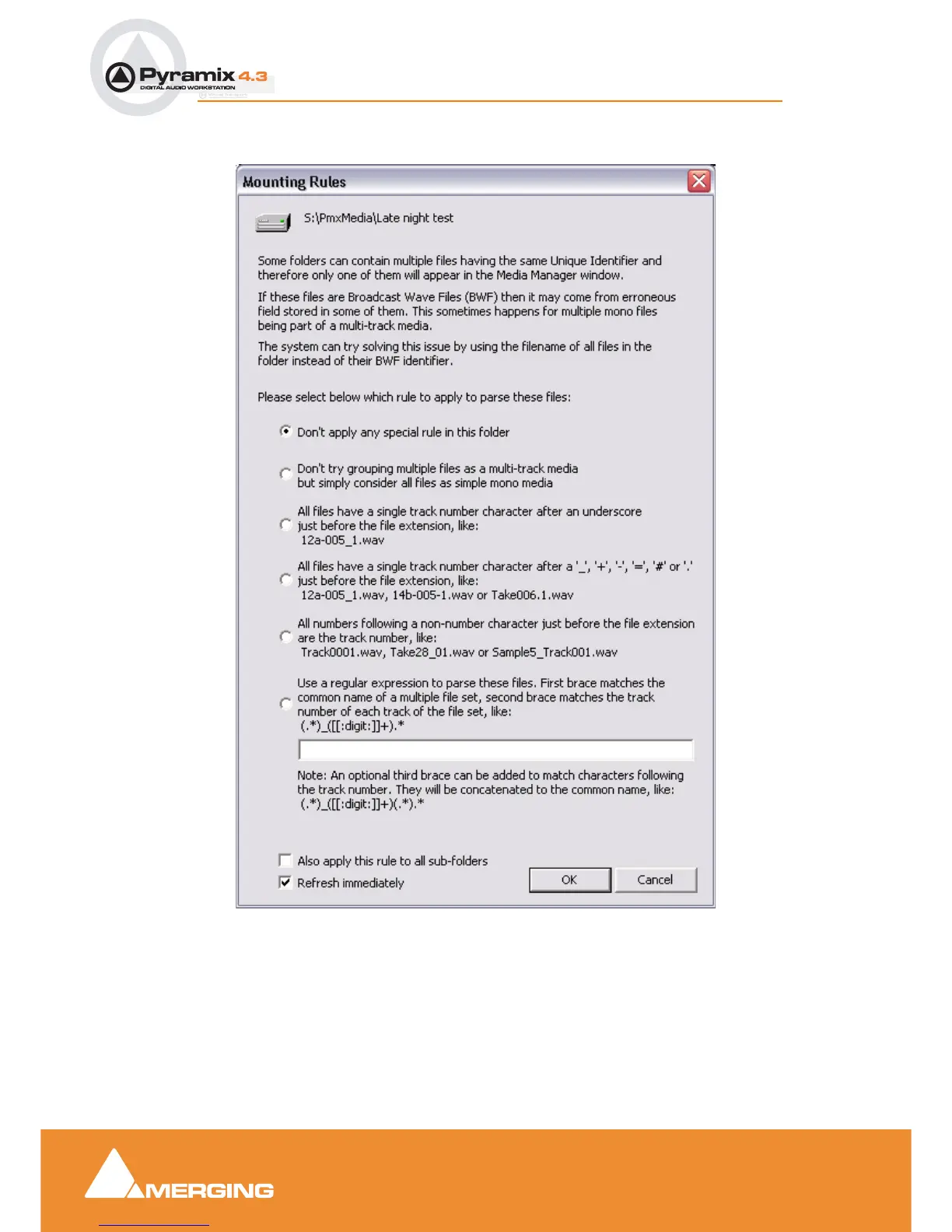 The description of the Rules that can be applied appears in the Mounting Rules dialog