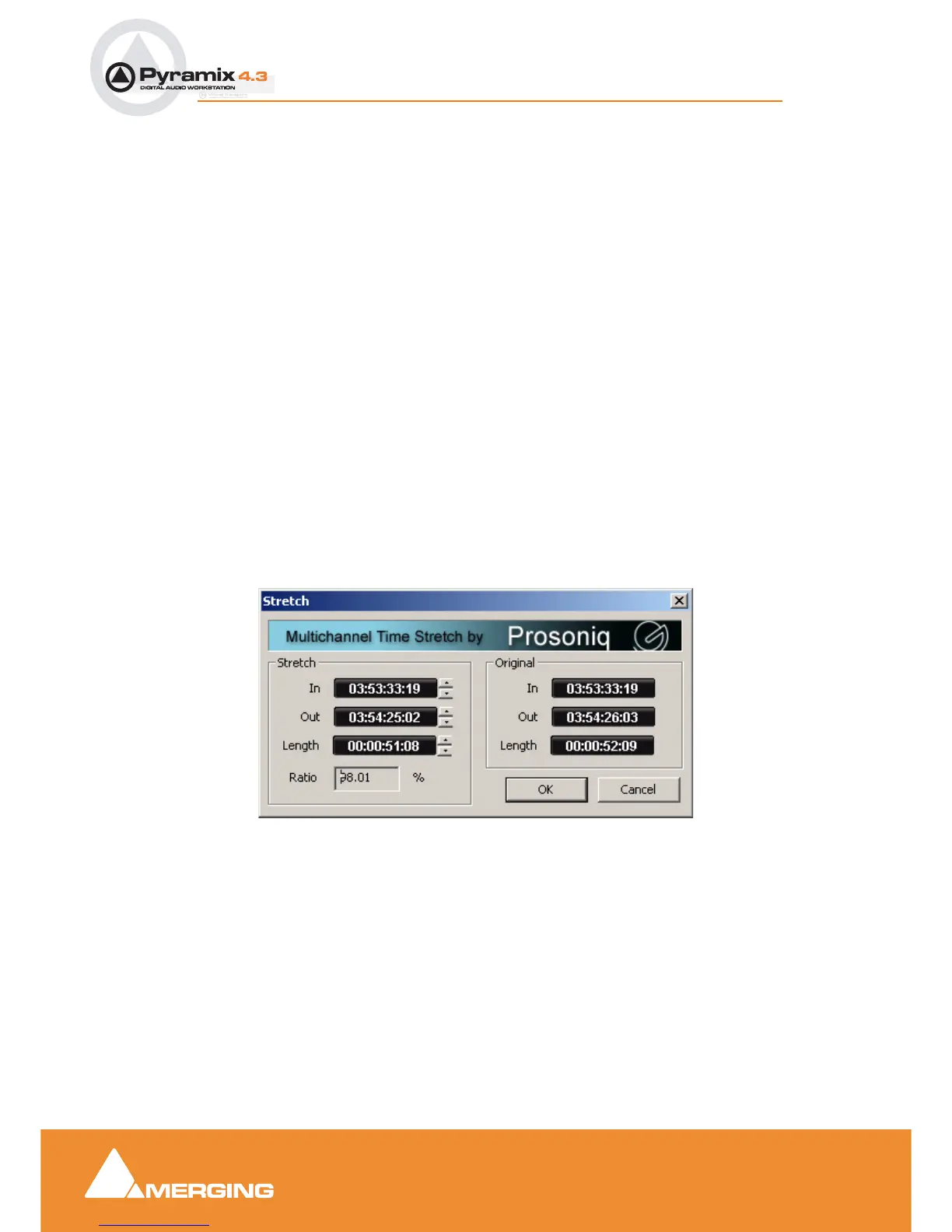 Stretch Opens the optional Prosoniq Multichannel Time Stretch plug-in dialog box.