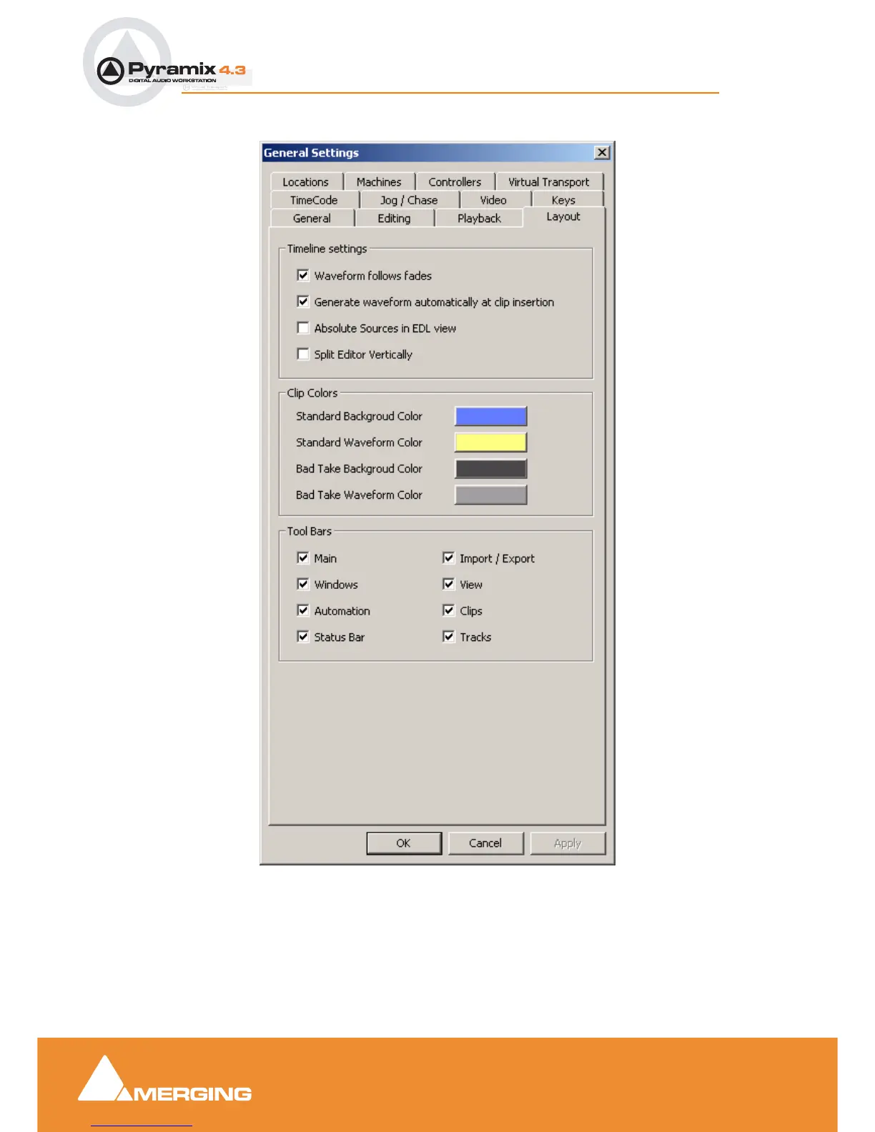 Merging Pyramix 4.3 - Layout; Timeline Settings