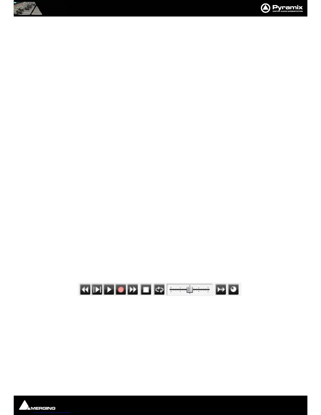 •The Record button puts Pyramix into Record mode, and creates a new recording to the disk on the Tracks