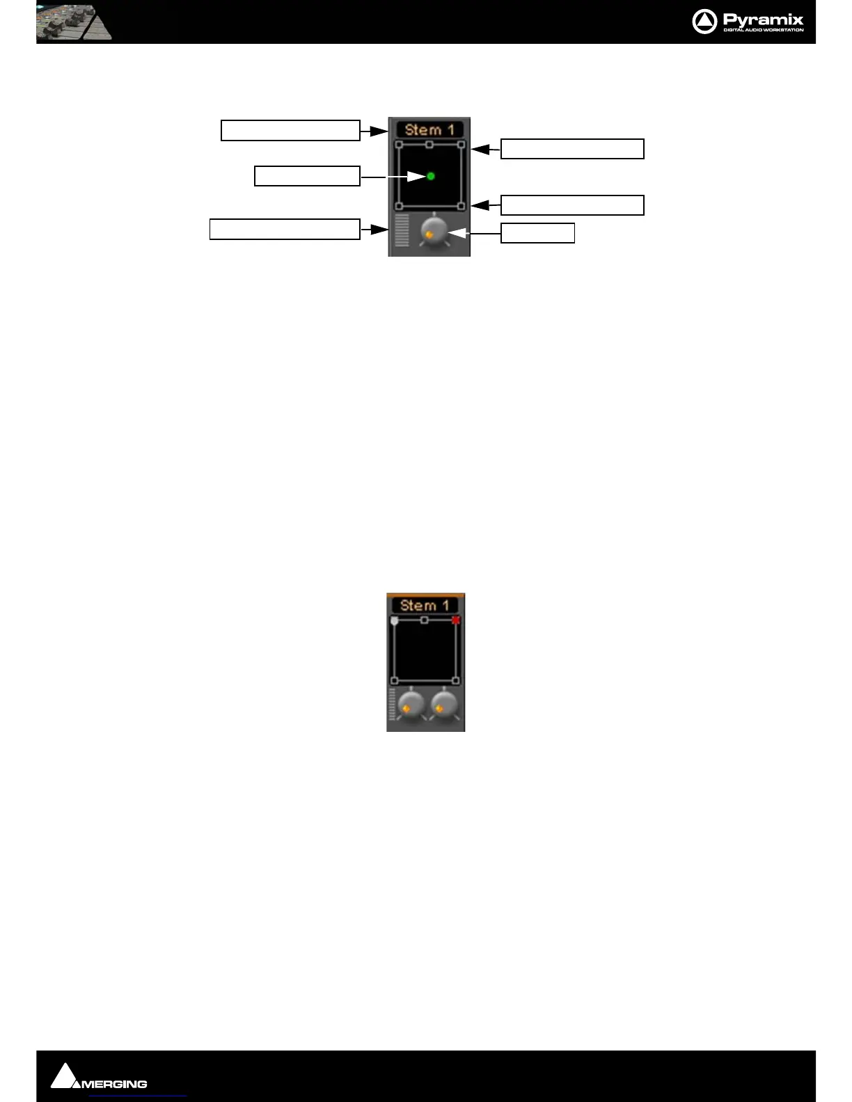 If a Multiple Surround Bus has been added to the mixer Stem ‘X’ appears at the top of the strip. Click on the box to