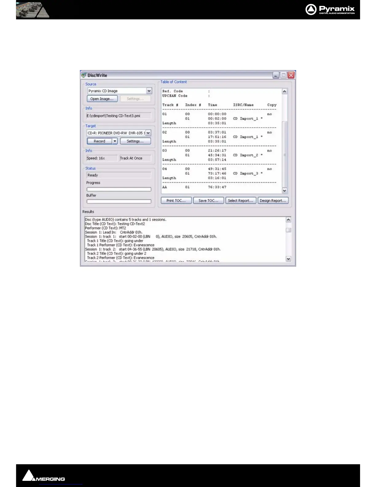 DiscWrite is a separate application bundled with Pyramix Virtual Studio that is used to write the CD-R (or DDP)