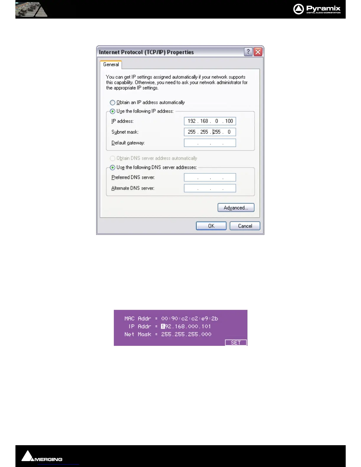 Typically, IP addresses can be, respectively: 192.168.0.3 (PMX) 192.168.0.4 (VCube) and 192.168.0.5 (ISIS), with a