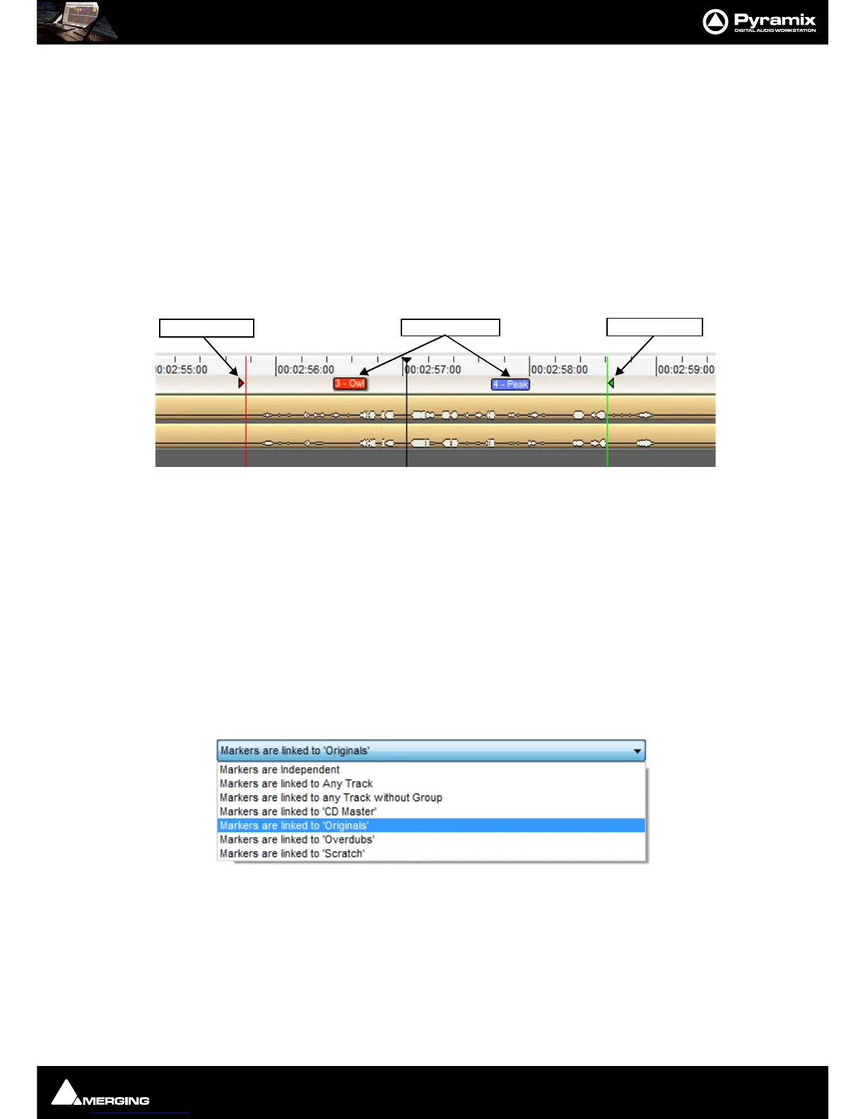 Pyramix has several types of Marker. For information about Track Group Markers please see: Track Group