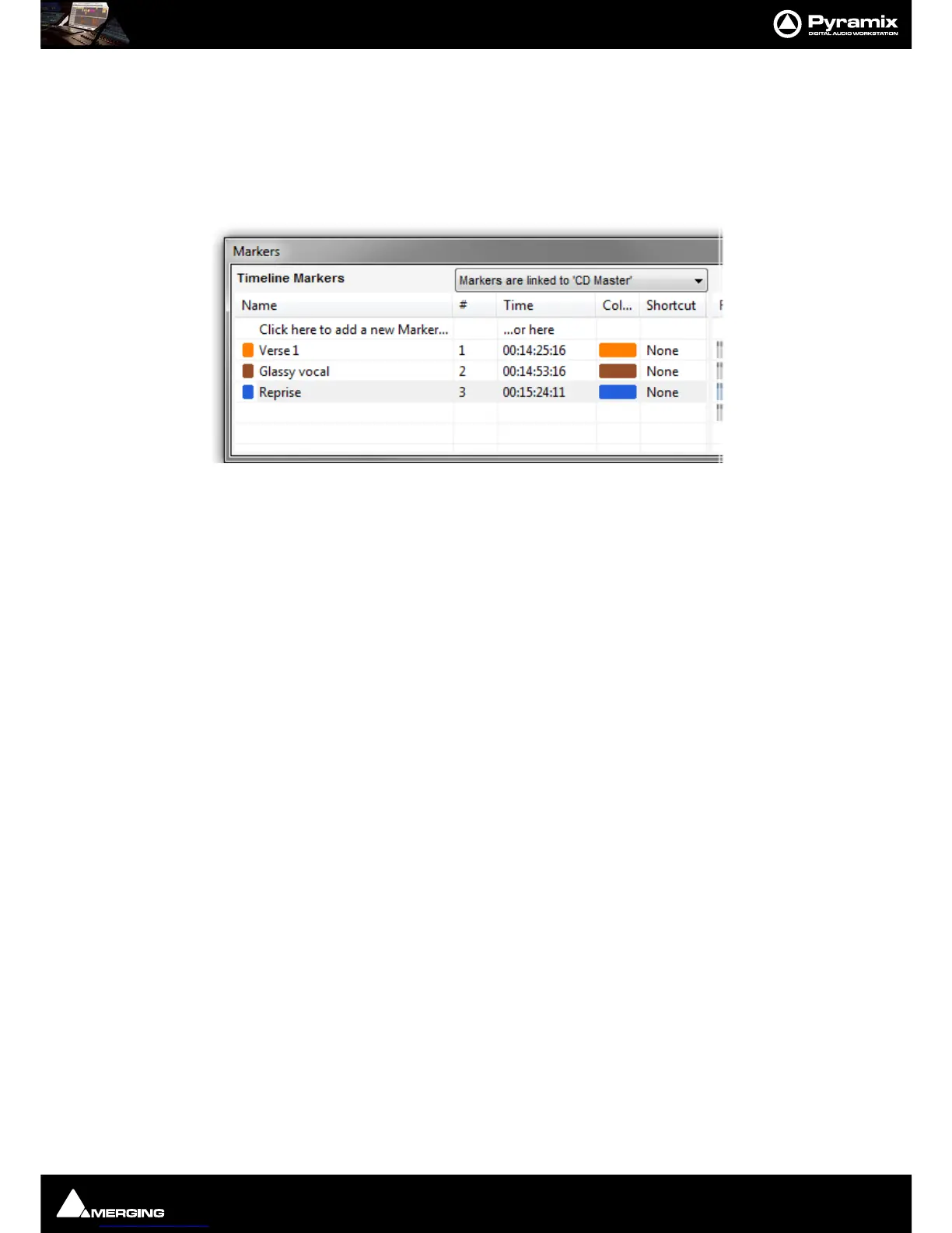Separate lists of Markers can be created for the Project as a whole and for individual Track Groups.