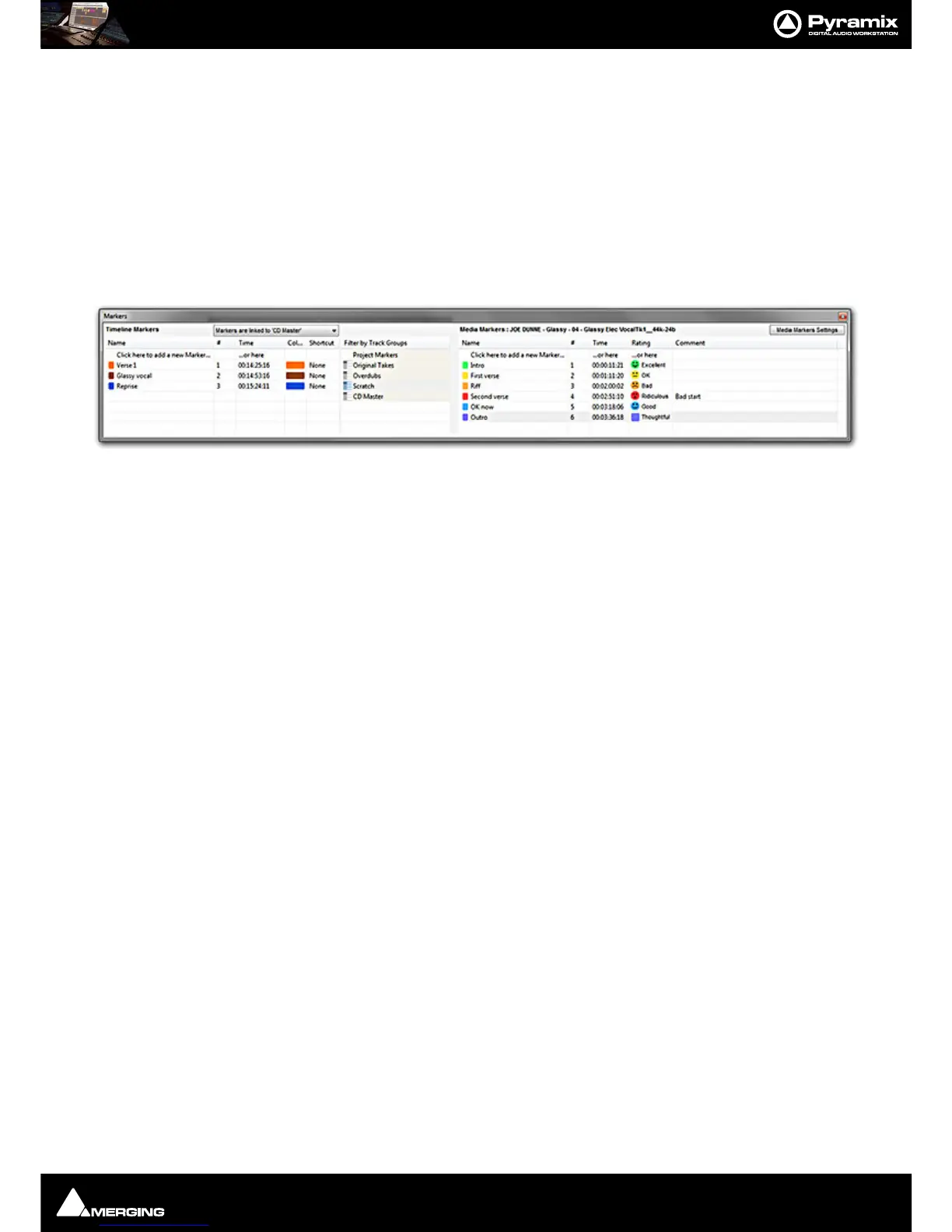 Different lists of Markers can be edited by selecting the desired Track Group or the main Project Markers list in