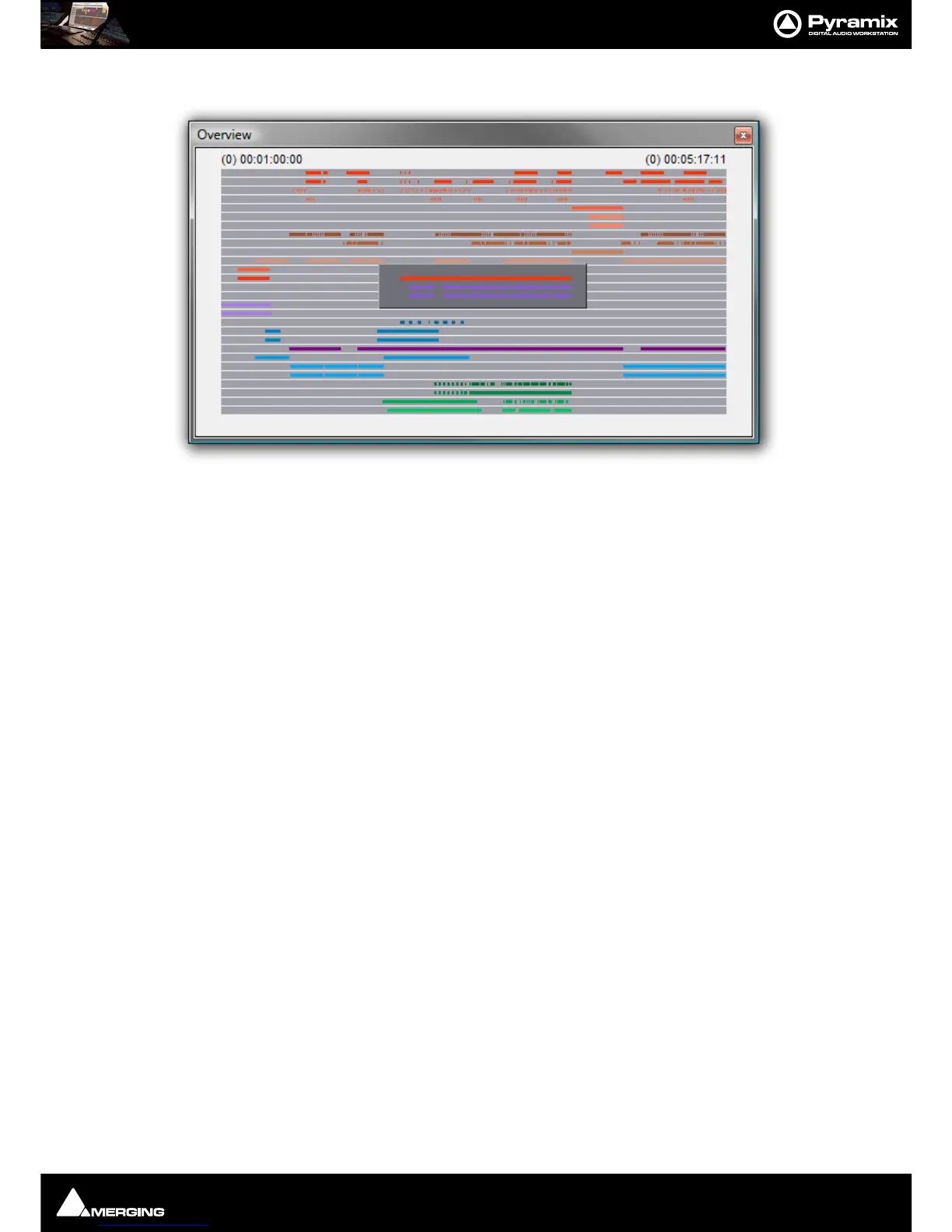 Overview displays a graphic representation of the entire current Composition, showing the location of all Clips.