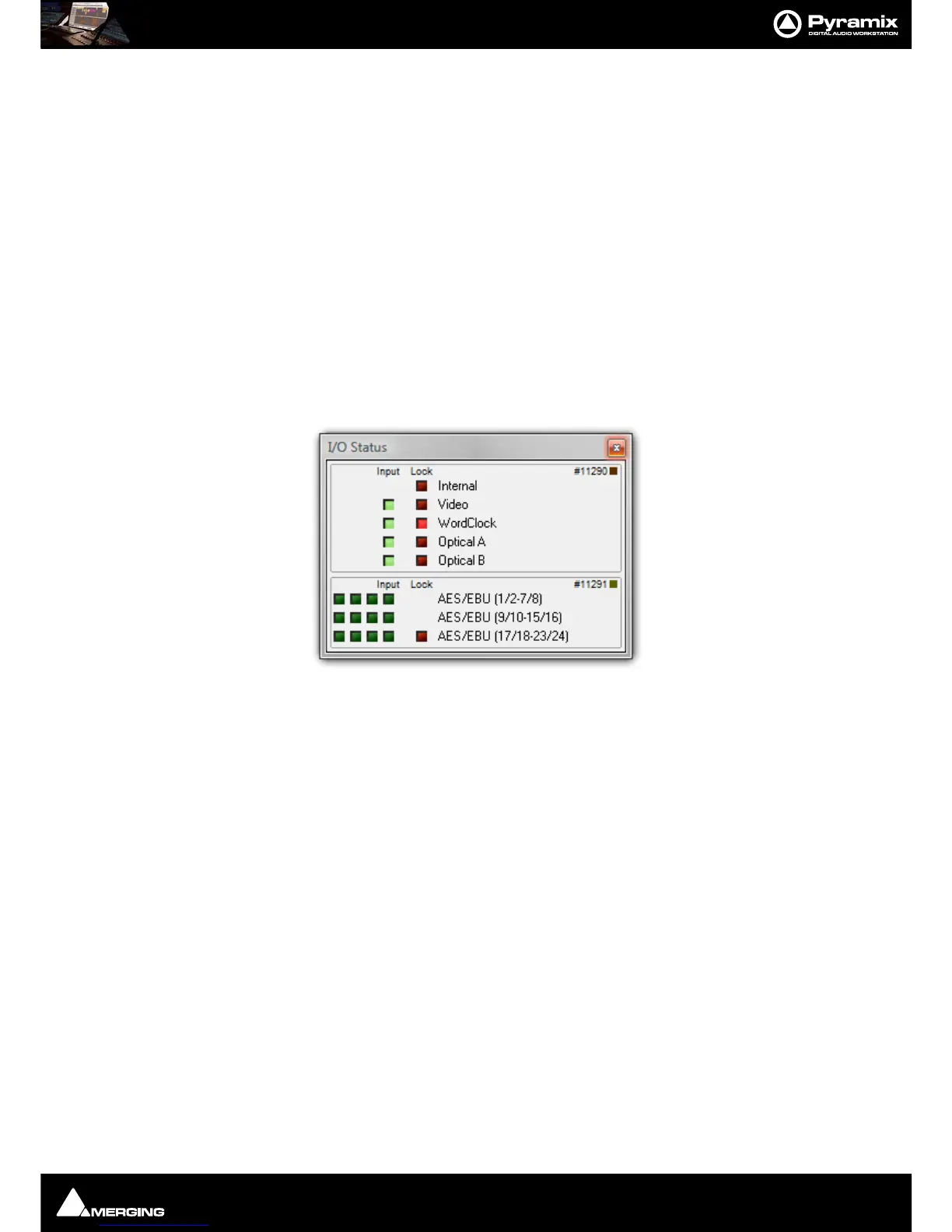 current clock source of Pyramix). When the red light is on and steady, Pyramix is using this input as it’s clock refer-