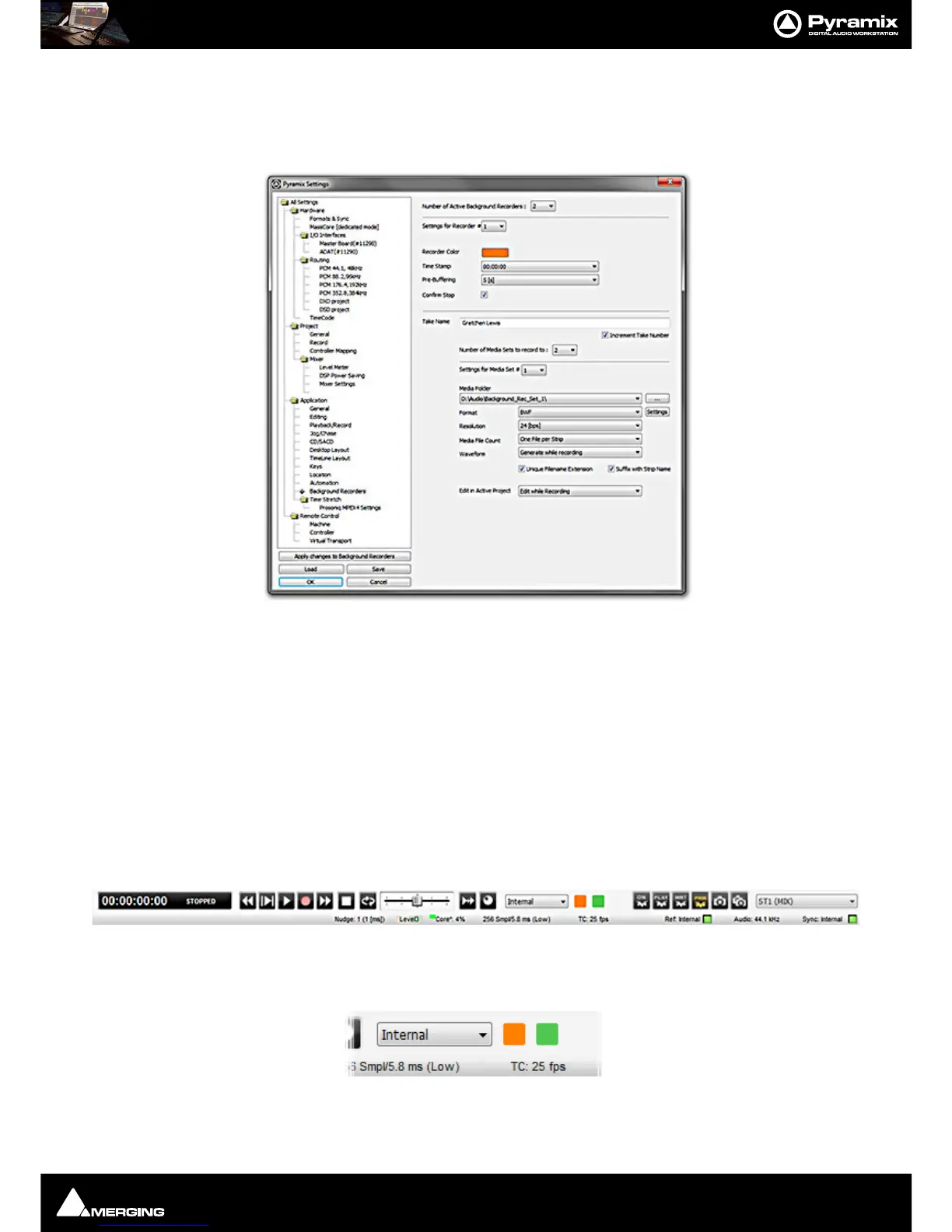 Once one or more Background Recorders have been set up they are operated from the Transport window or the