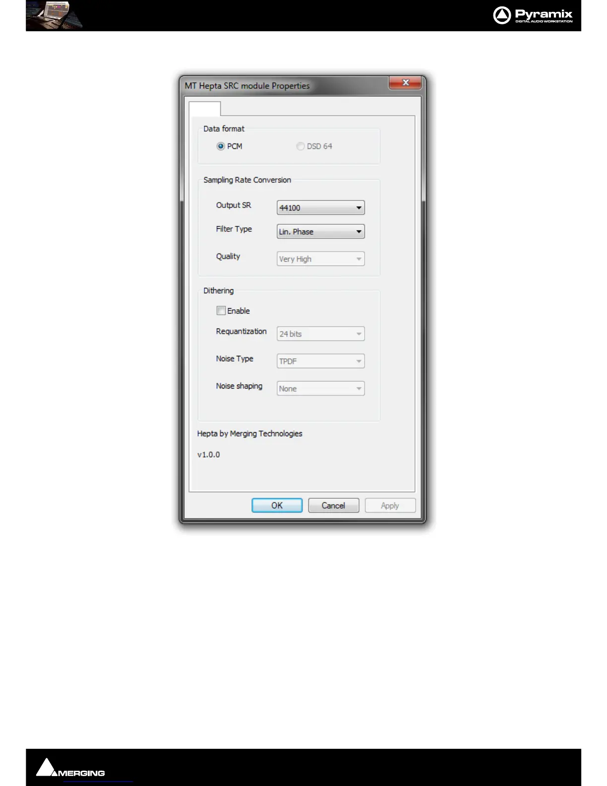 Selecting Properties opens the MT Hepta SRC module Properties dialog: