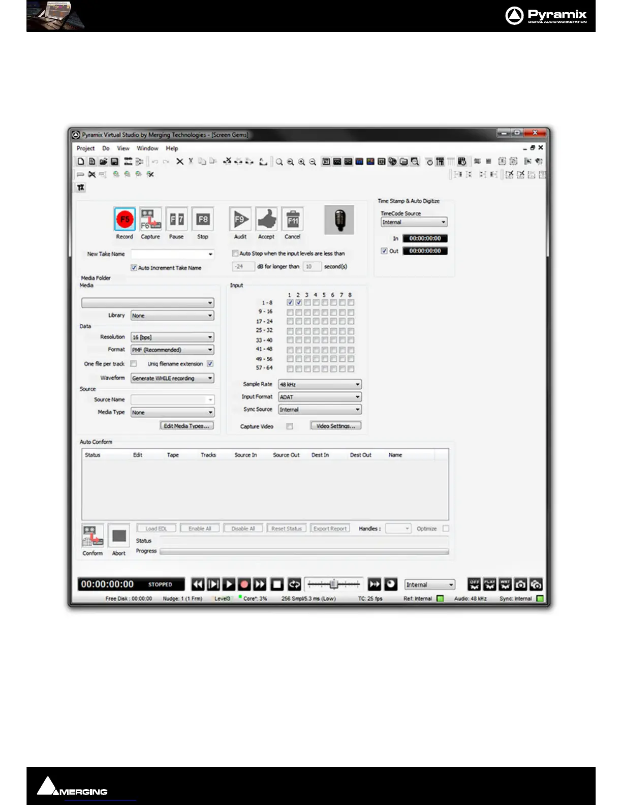 A Digitizing Session is a special type of Pyramix Project which is intended for efficiently loading audio material