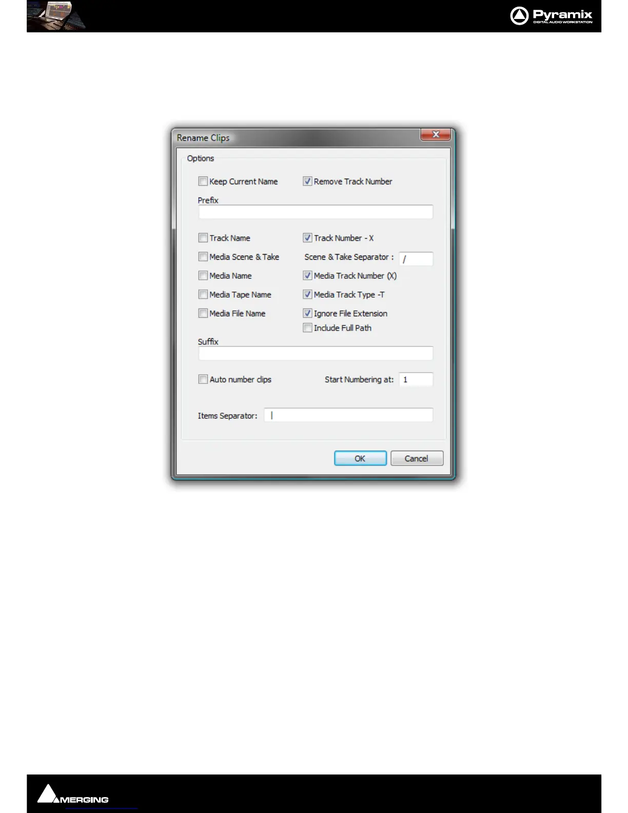 Clips Rename open the Rename Clips dialog: