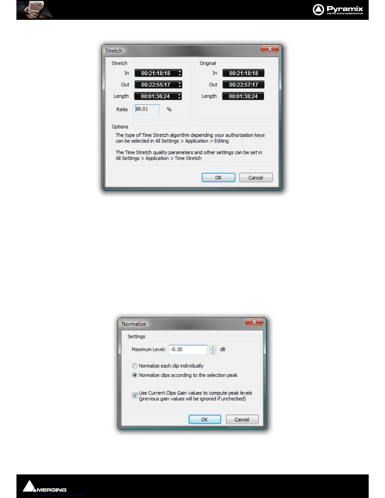 Ratio of stretch or squeeze is shown as a percentage. Clicking the OK button starts the process. Cancel aborts.