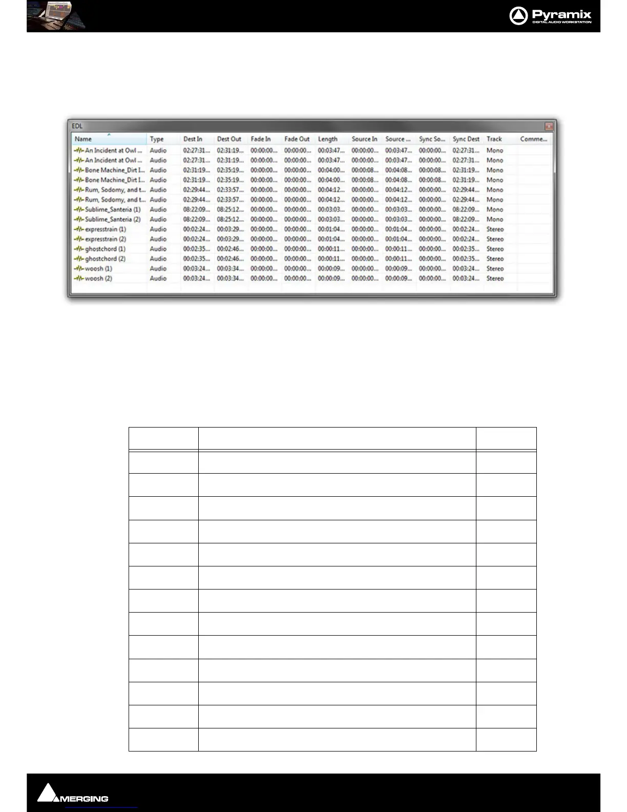 The EDL (Edit Decision List) Window, is a textual and numeric representation of the same information shown