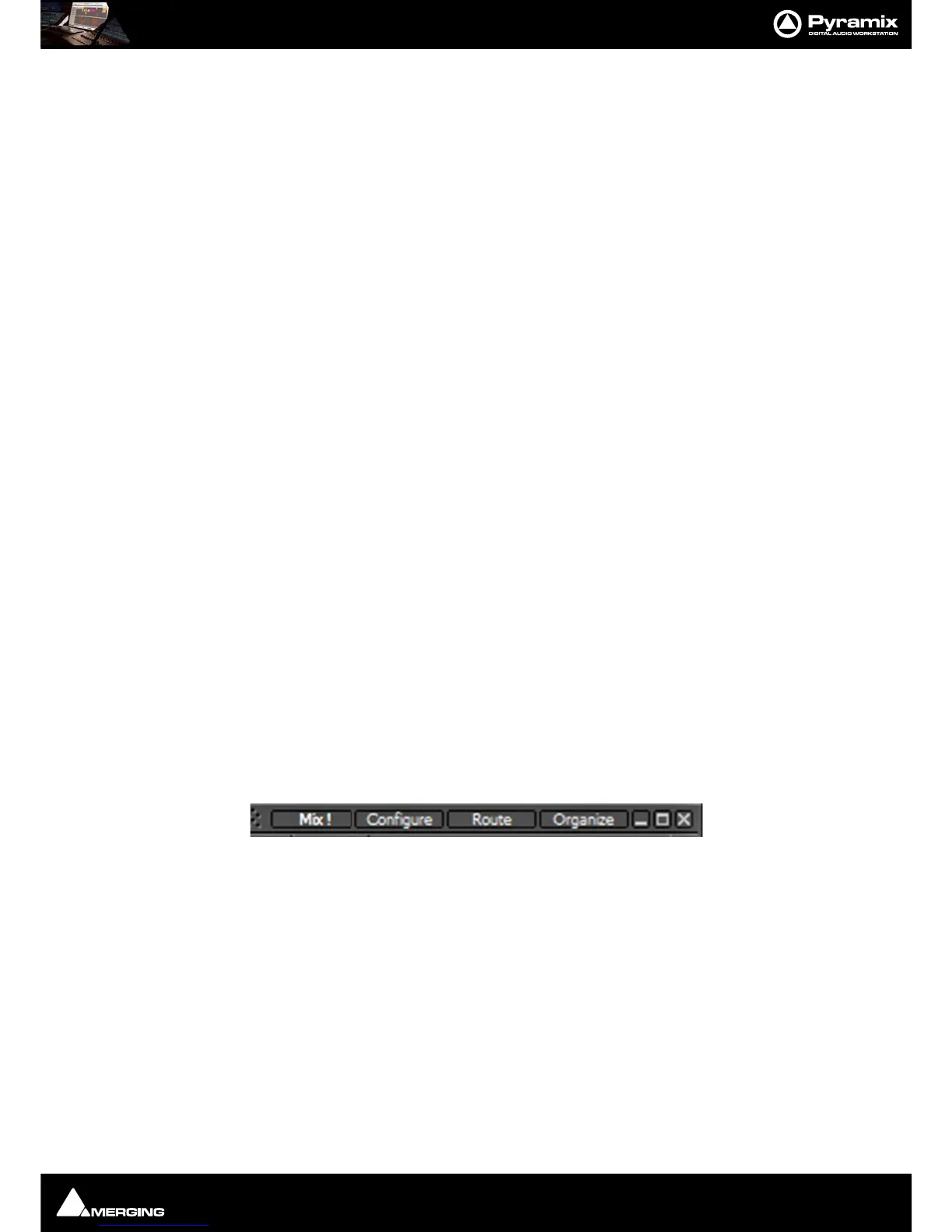 Mix ! page. The other pages, Configure, Route and Organize, toggle with the Mix ! screen