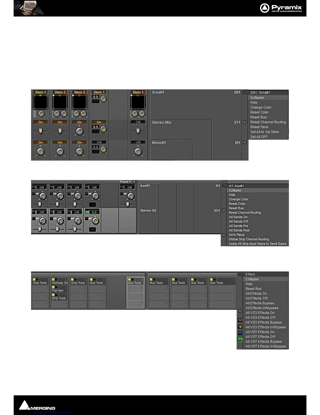 more ‘Stems’. The Mix Bus rows also contain the On/Off switch and the panner to