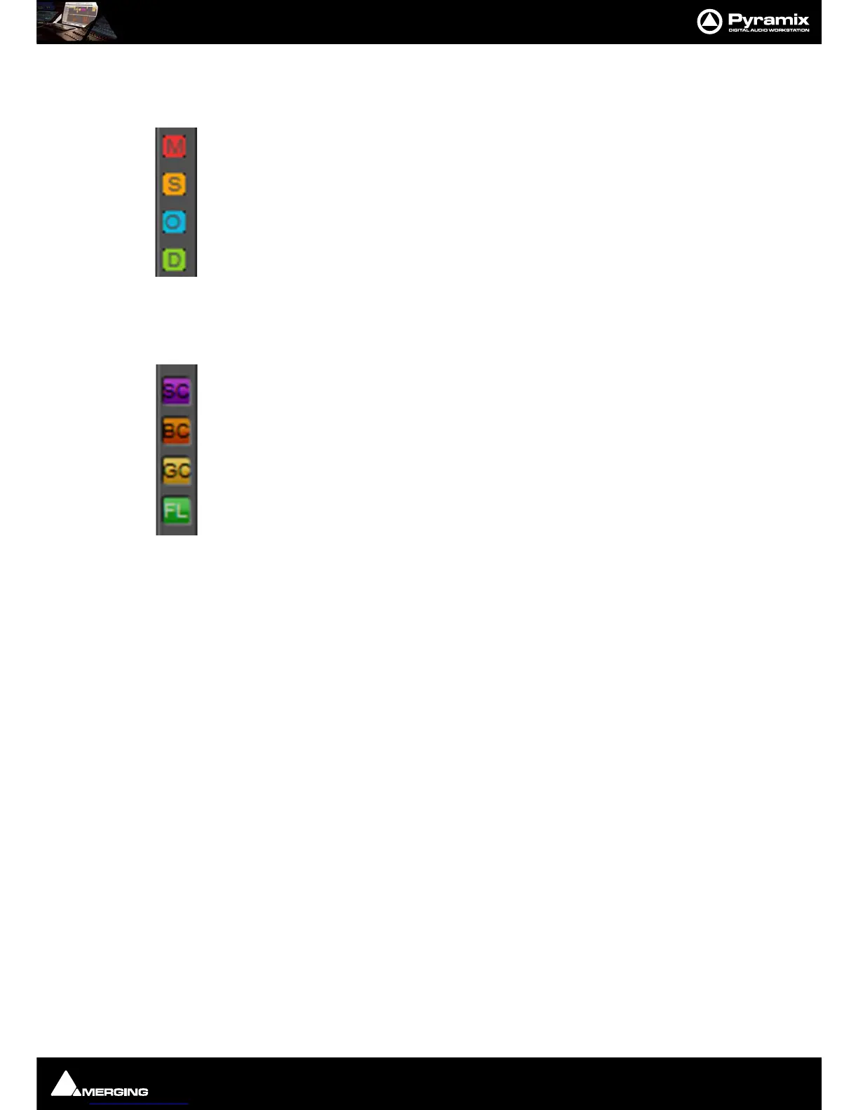 SOLO - Lit when a Solo or Solos are active. Clicking on the lit button cancels all active Solos.