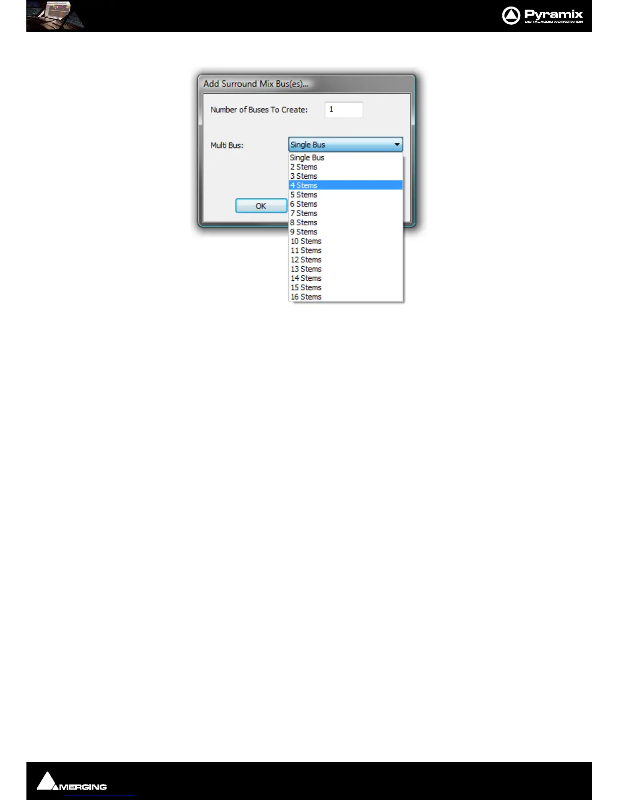 Add Bus - Mono Mix, Stereo Mix, Surround Mix,