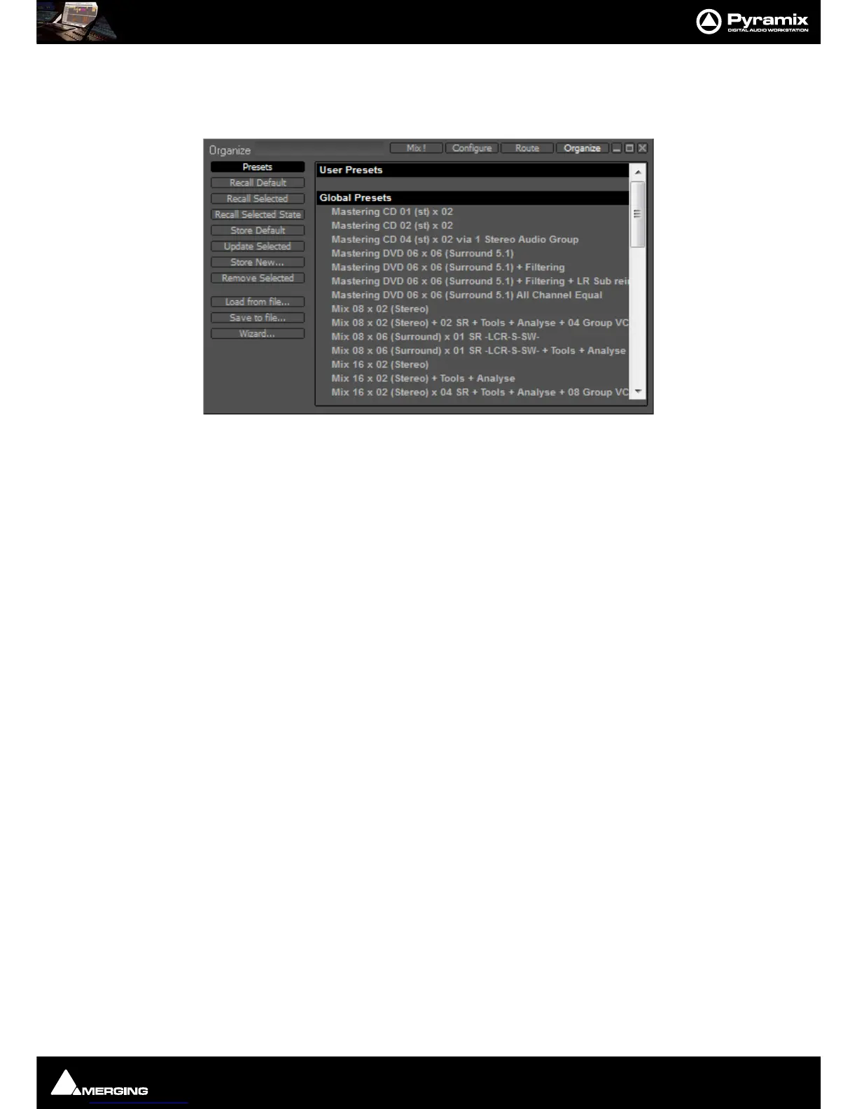Mixer Presets can be saved in a user folder or added to the main Mixer Preset list either for the current user or all