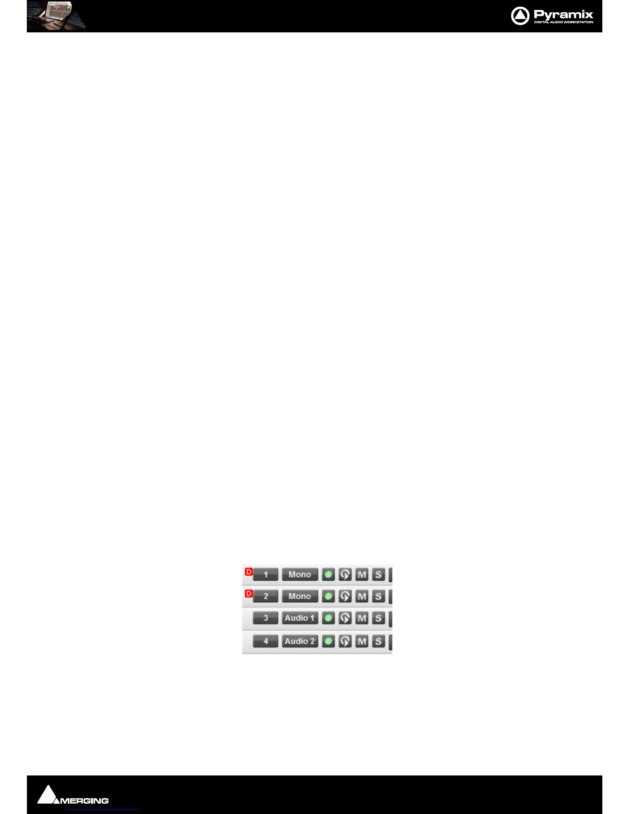 ‘normal’ strips. To indicate this clearly, Tracks feeding Direct Monitoring Input Strips show a small