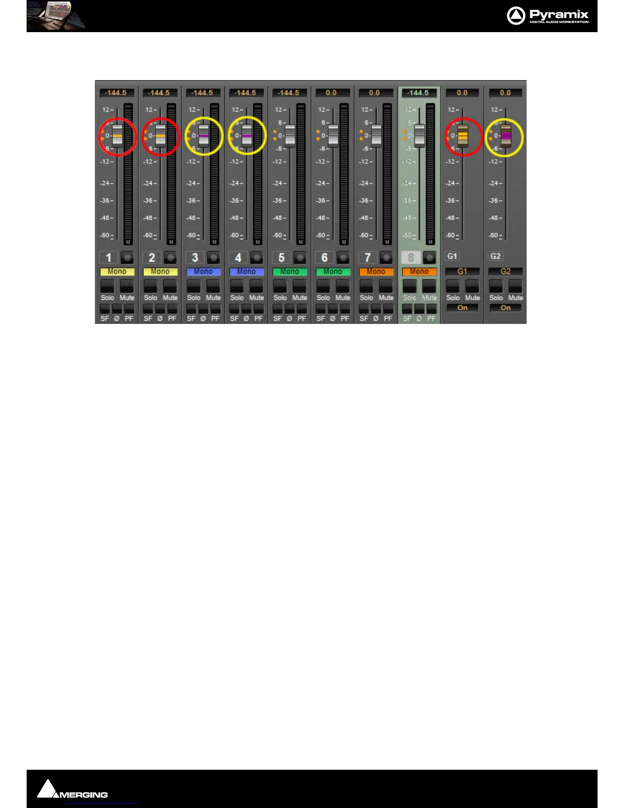 sole) the VCA Group fader knobs and the knobs of faders in strips belong to the groups are colored accordingly.