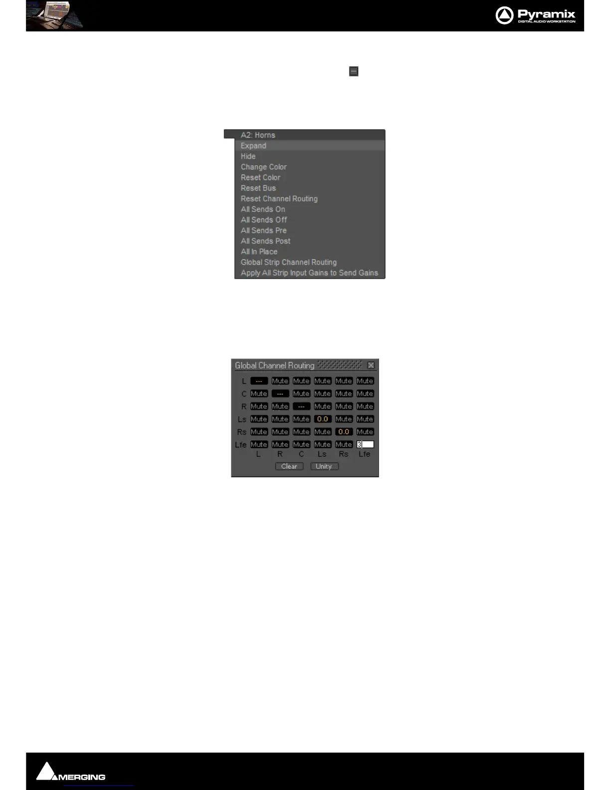 Note: Invoking either Clear or Unity will affect all Strips Aux Sends to this Aux Send Bus.