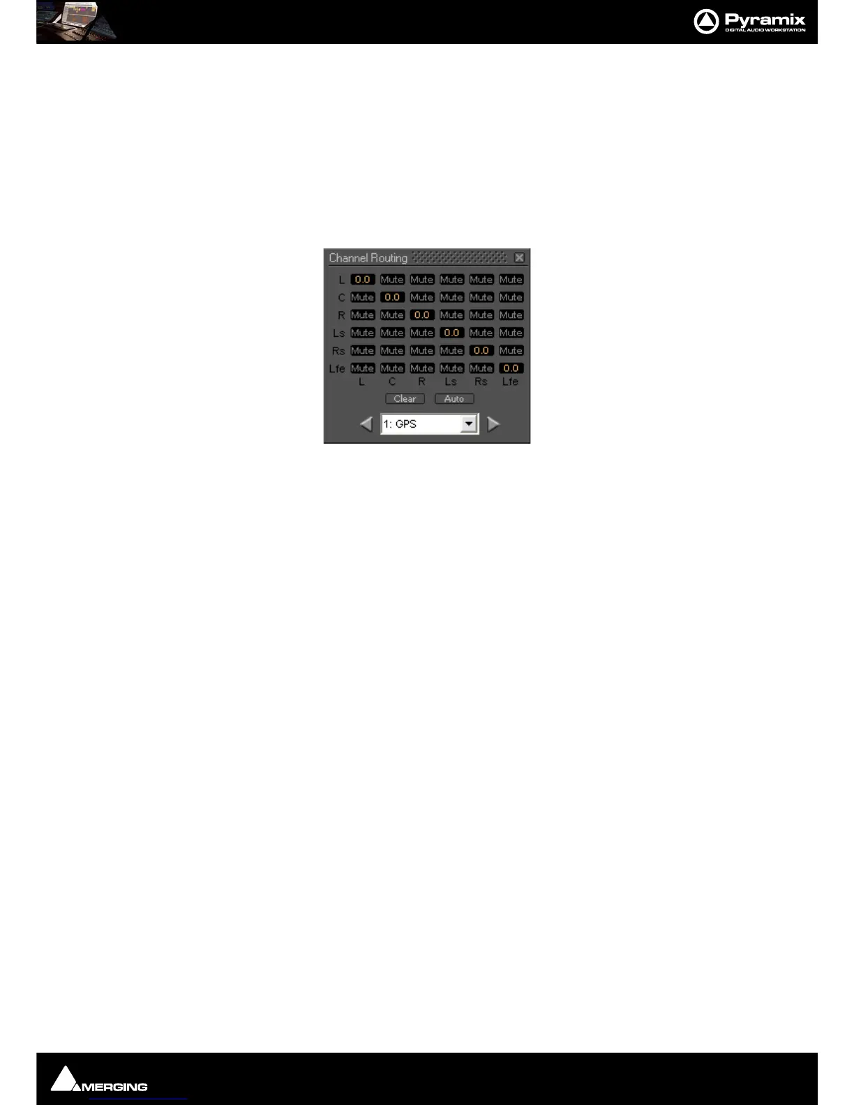 Shown here with a 5.1 channel feeding a 5.1 Aux Send Bus. Gain values can be entered for each node of the Strip/