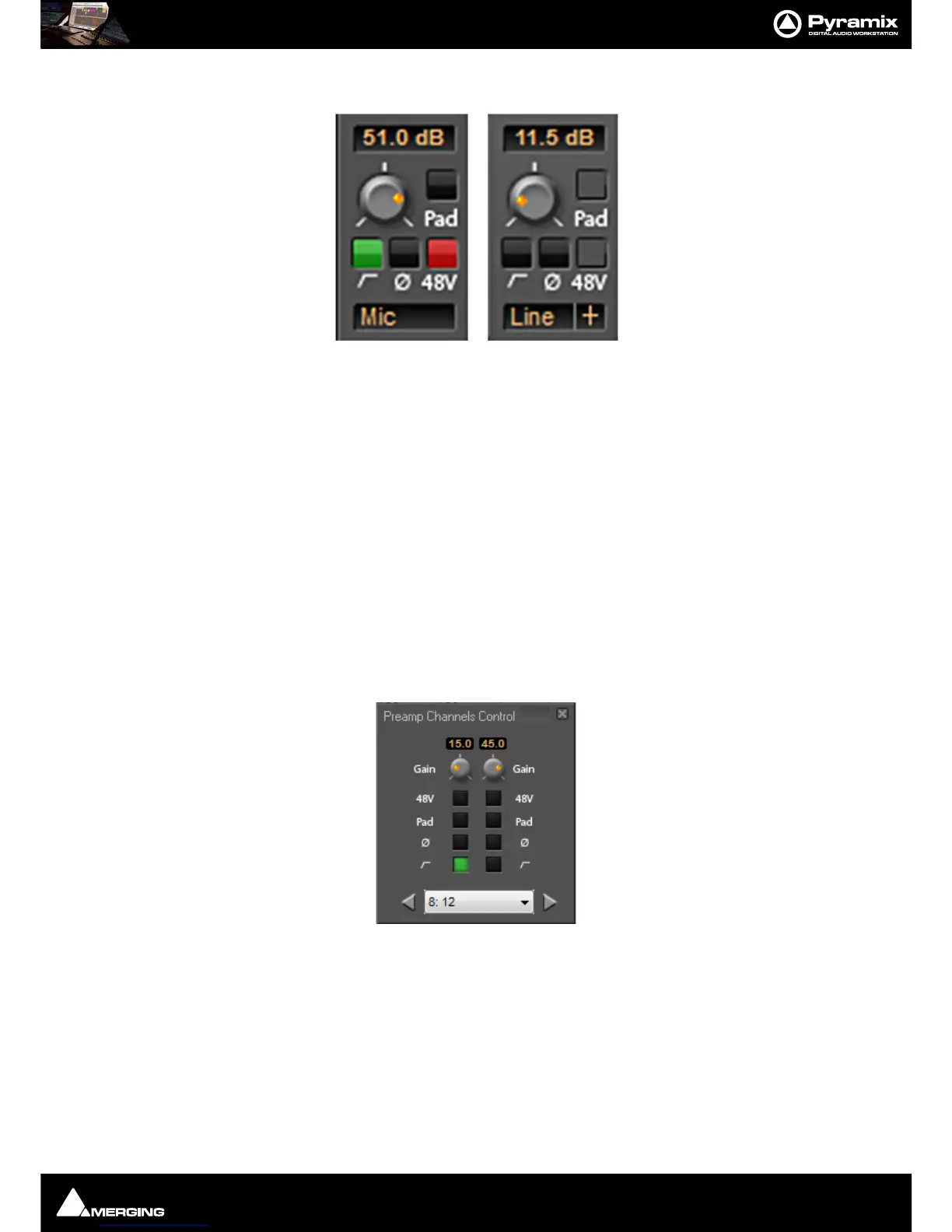 Mic/Line Displays the current preamp mode. Clicking on the box pops-up a list with the