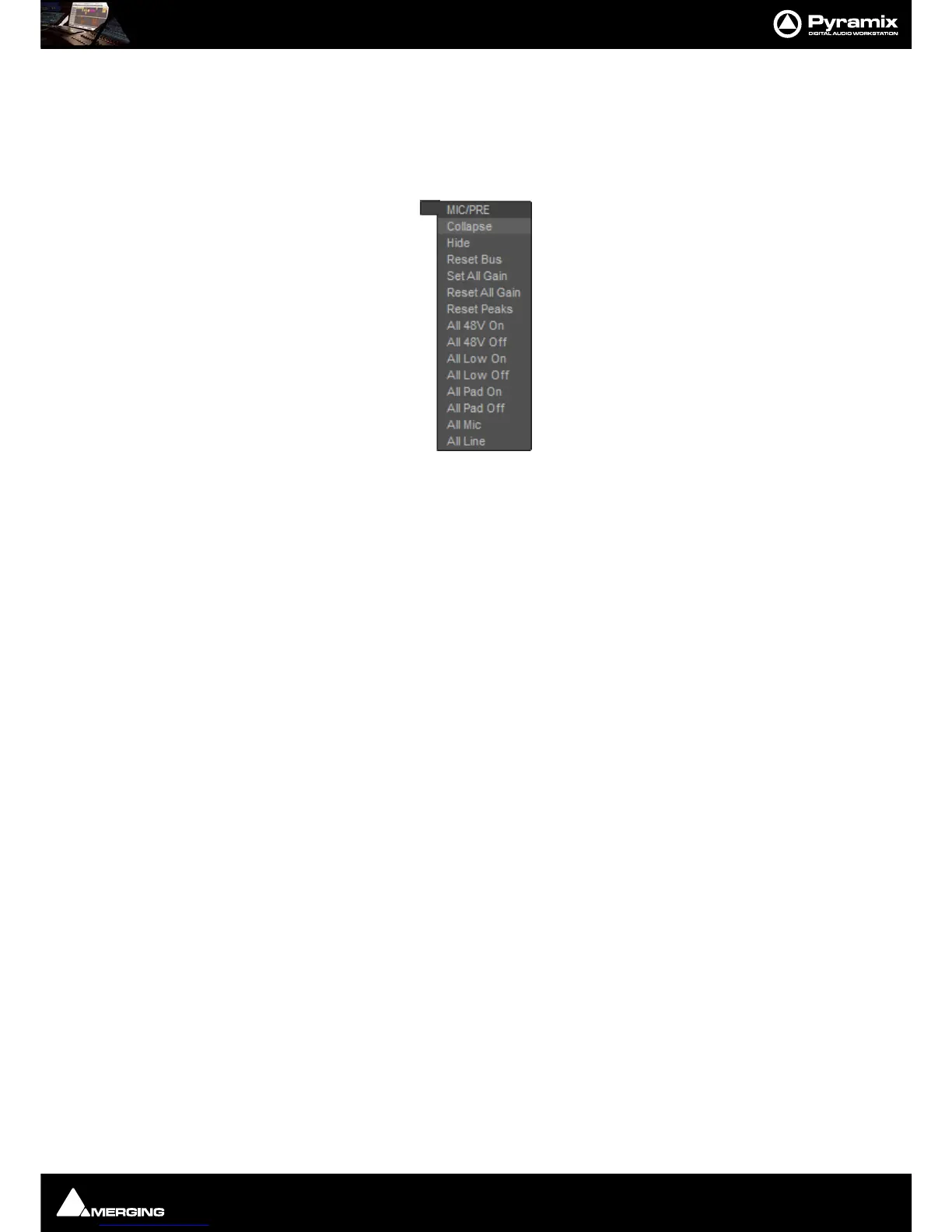 Reset Bus Resets all the Preamp Gain settings to 0dB.