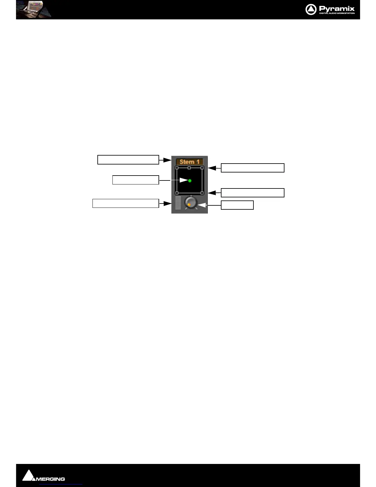 If a Multiple Surround Bus has been added to the mixer Stem ‘X’ appears at the top of the strip. Click on the box to
