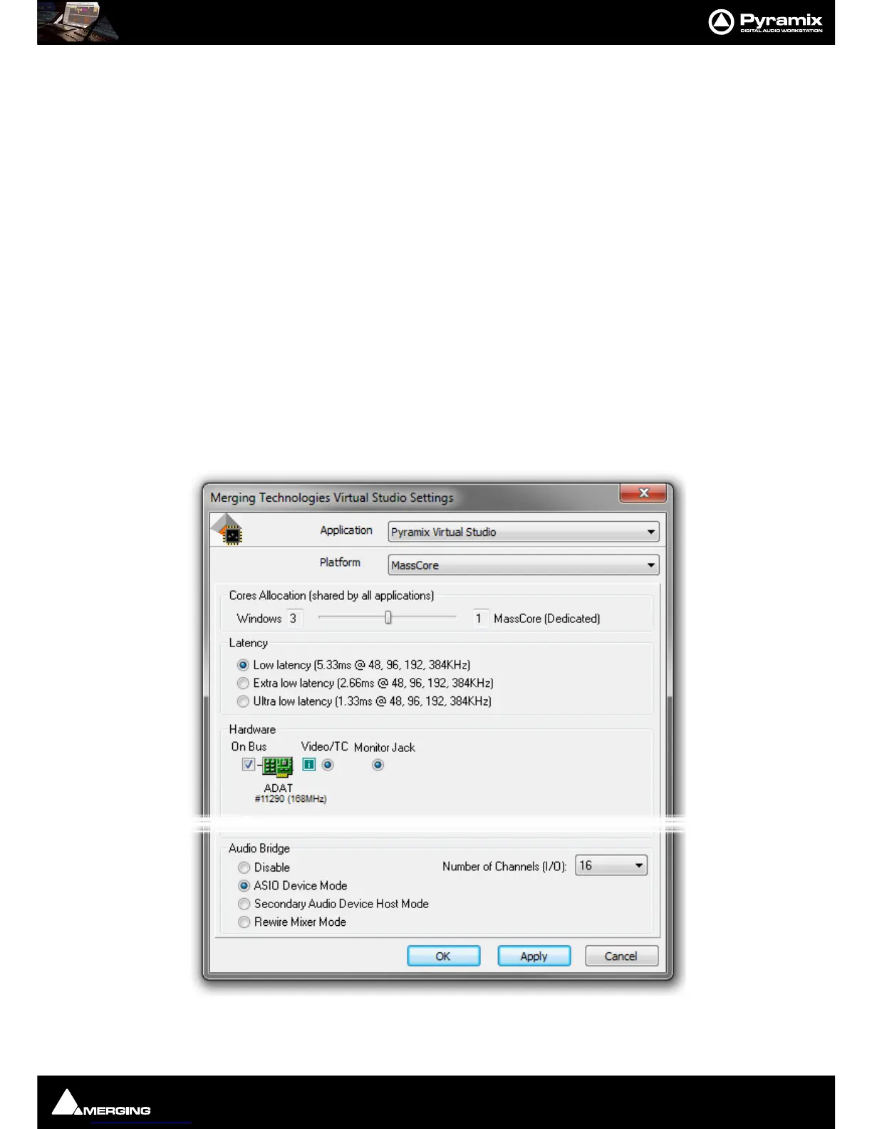 •The Audio Bridge enables Pyramix to connect to a non Merging Technologies Audio Device in the sys-