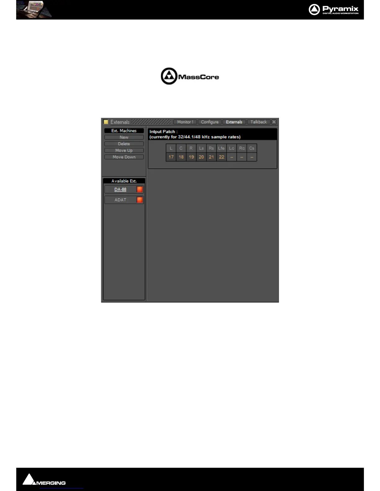 Each external has a dedicated input Patch. Patches are set up by clicking in the boxes below the speaker letters