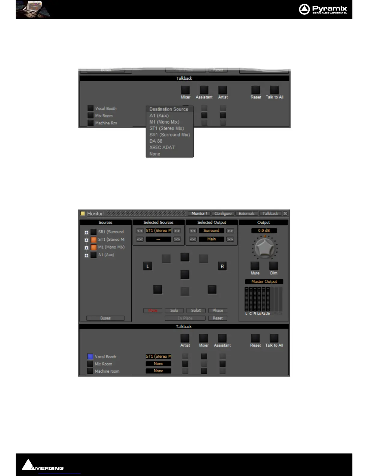 Continuing the foregoing Talkback example it is also possible to add foldback to the Talkback outputs. To add