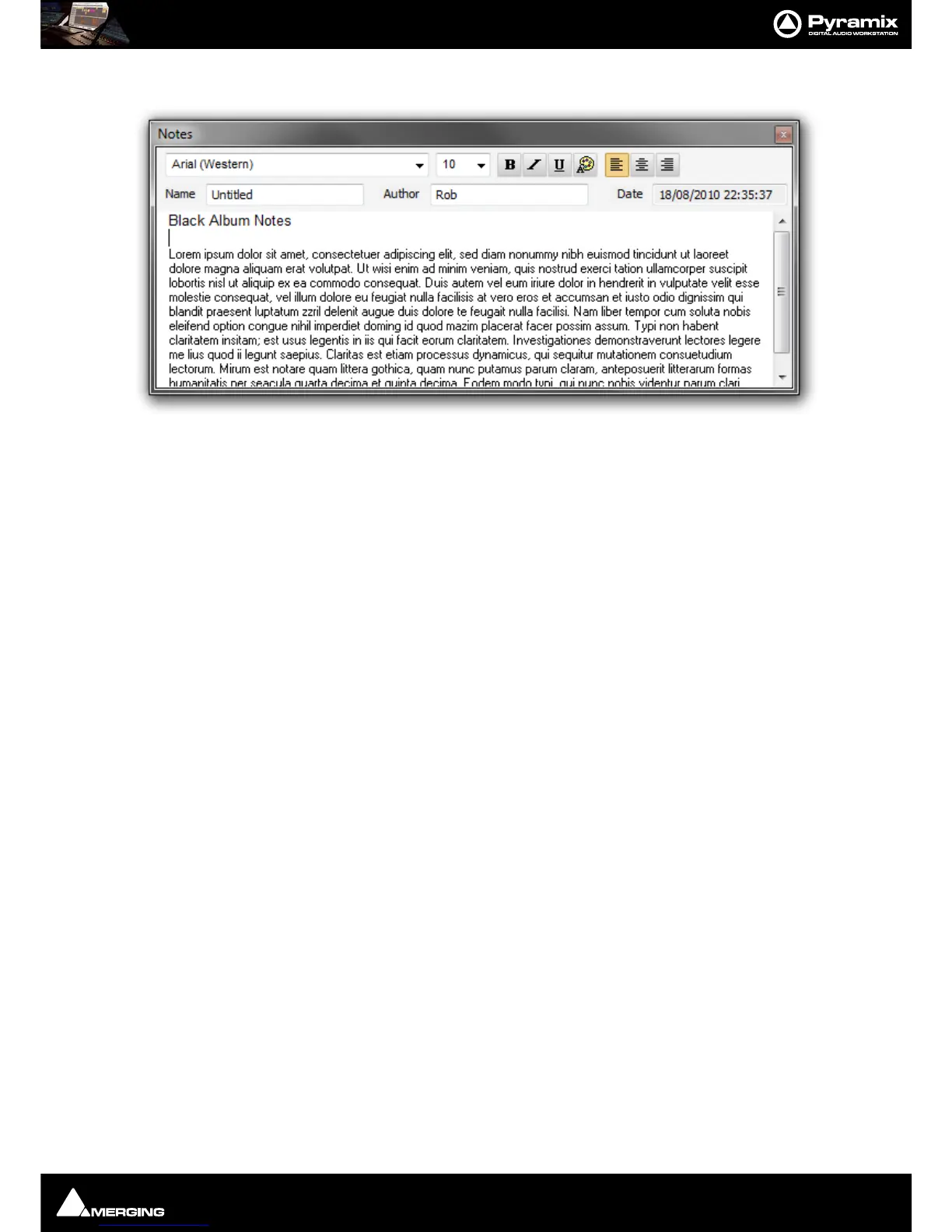 The Notes Tab provides a simple word processor for adding notes to the Project. Anything written here will be