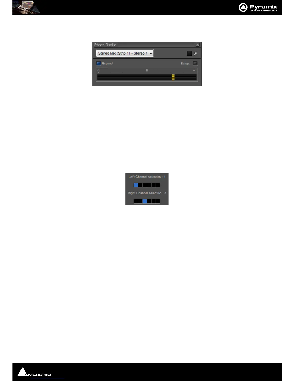 two selectors allow you to select the appropriate channels for the left and right input of the plug-in. On a surround