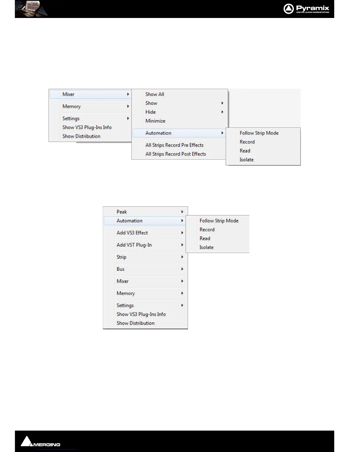 Automation modes are set globally for the entire mixer, per strip or per component.