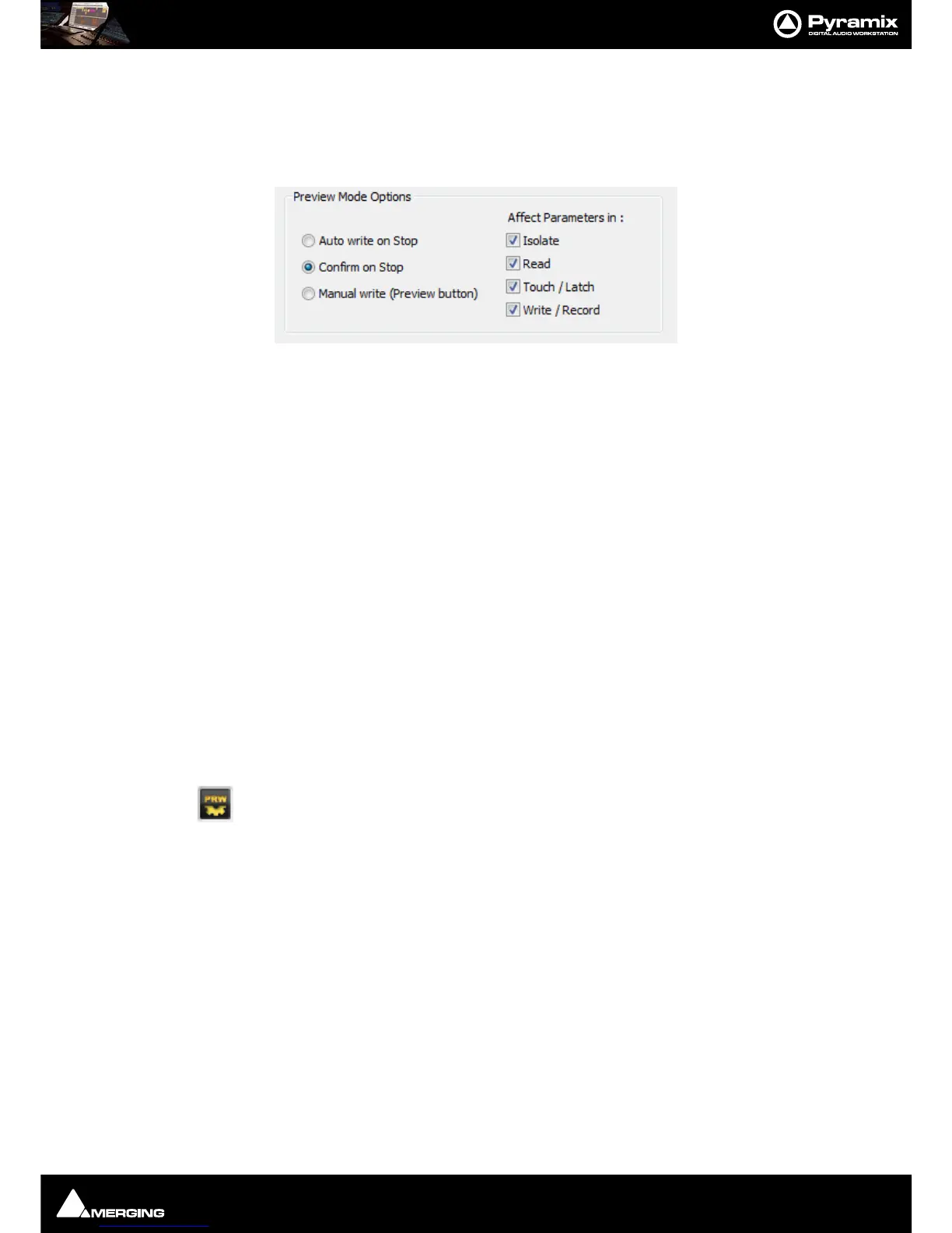 The Automation states in which parameters will be affected by changes in Preview Mode are set by checking the