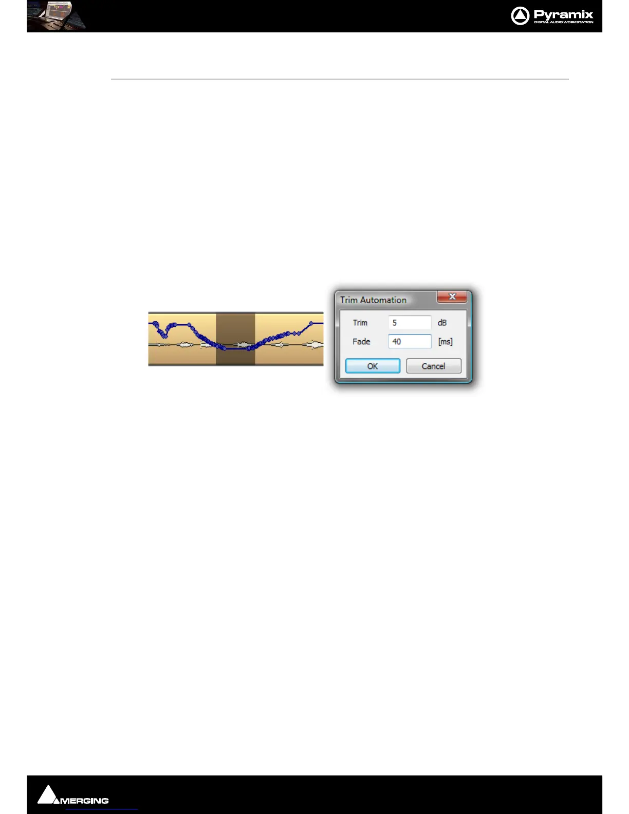 Trim box. The Fade box allows a value in ms to be entered. This defines the length of fade which is