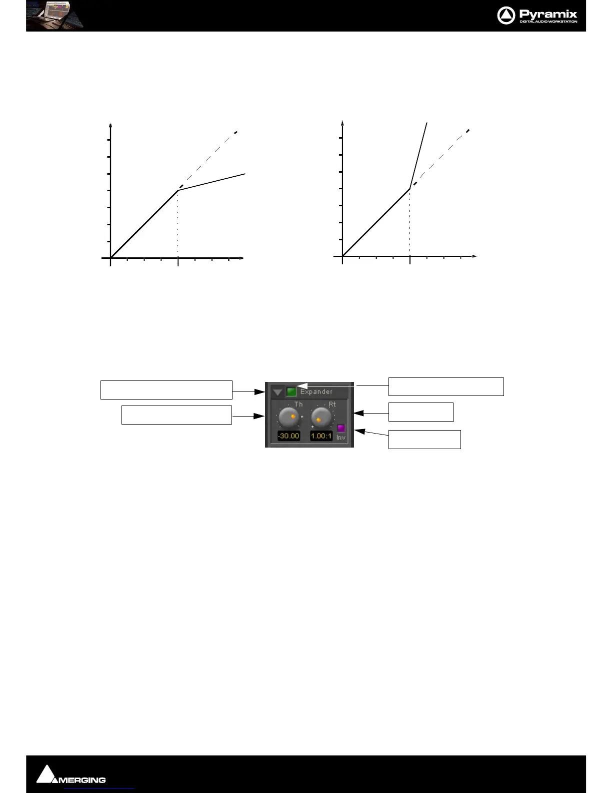 ting of the ratio control. In de-compressor mode, when the input level exceeds the threshold level, the gain is