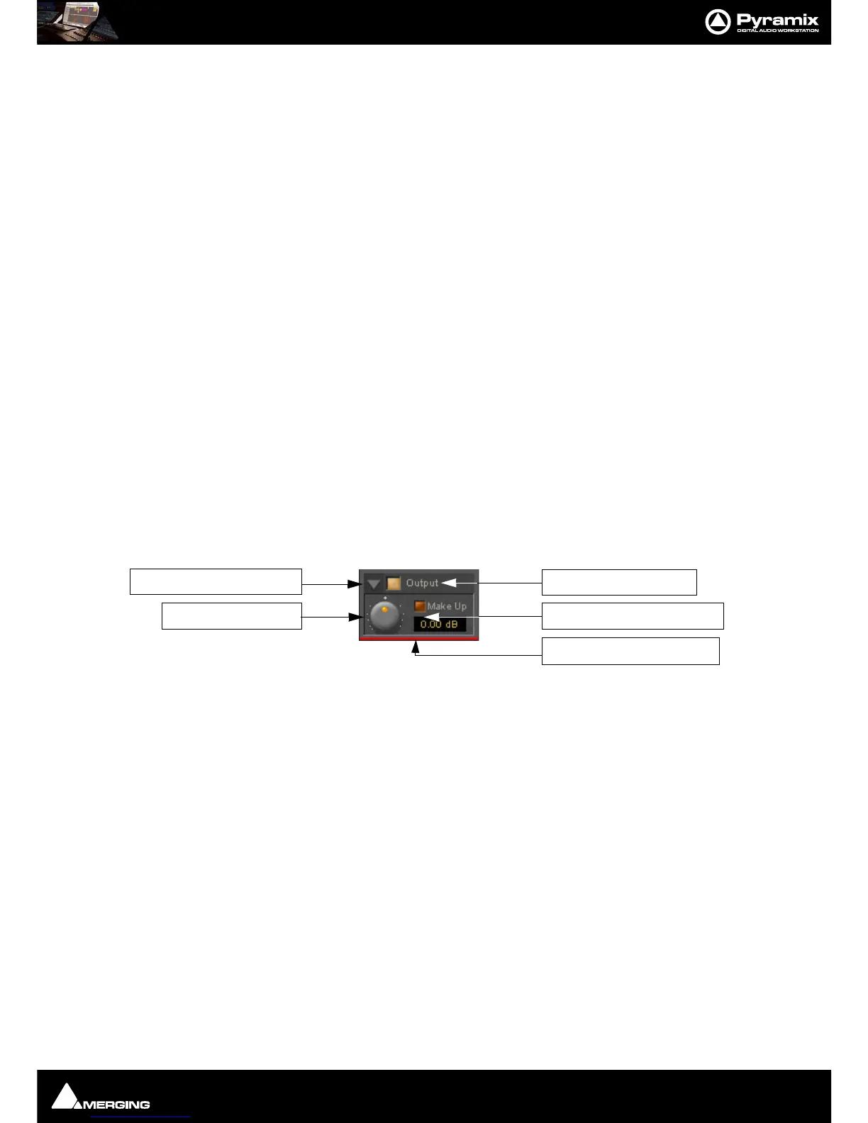 When lit, Output gain is automatically adapted according to the settings in the Dynamics Section. In this case the